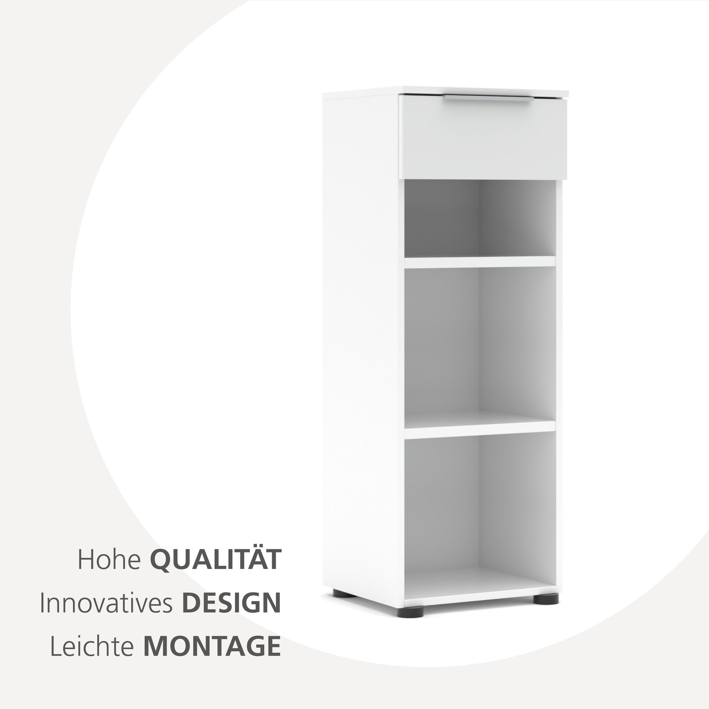 Die klare Linienführung und die helle Farbgestaltung in Weiß sorgen für eine zeitlose Optik, die sich harmonisch in unterschiedliche Einrichtungskonzepte einfügt und eine aufgeräumte Arbeitsumgebung unterstützt. Gefertigt aus beschichteter Spanplatte mit Melaminoberfläche präsentiert sich der Korpus in Weiß und überzeugt durch eine pflegeleichte sowie robuste Beschaffenheit.