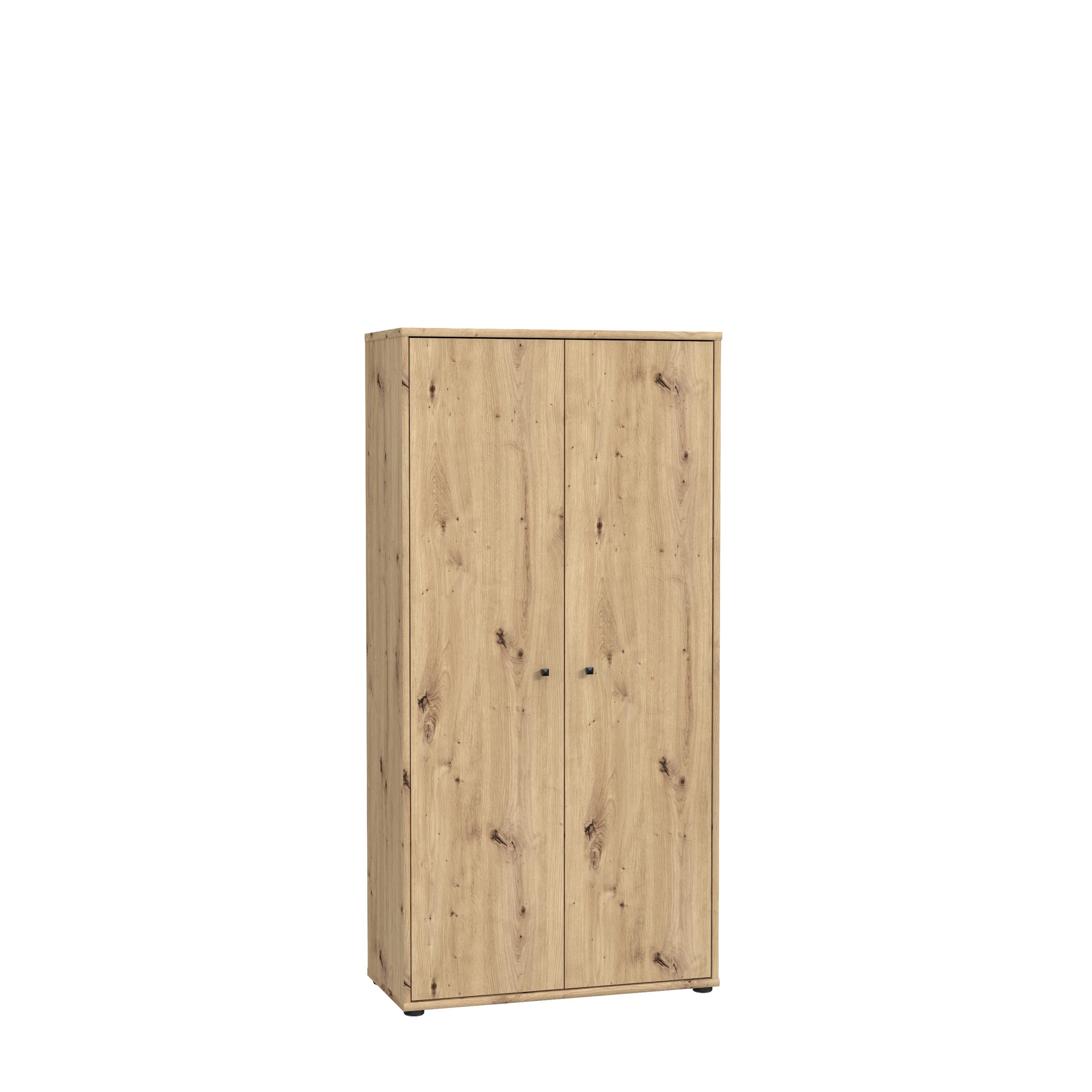 Optisch überzeugt „Tembi I“ mit einer hochwertigen Artisan Eiche Nachbildung, deren Maserung täuschend echt wirkt und dem Möbelstück eine warme, wohnliche Note verleiht. Die schwarzen Kunststoffgriffe bilden einen stimmigen Kontrast und unterstreichen das moderne Erscheinungsbild. Gefertigt aus Spanplatte ist der Schrank leicht zu handhaben, zugleich aber robust und widerstandsfähig gegenüber alltäglicher Nutzung.