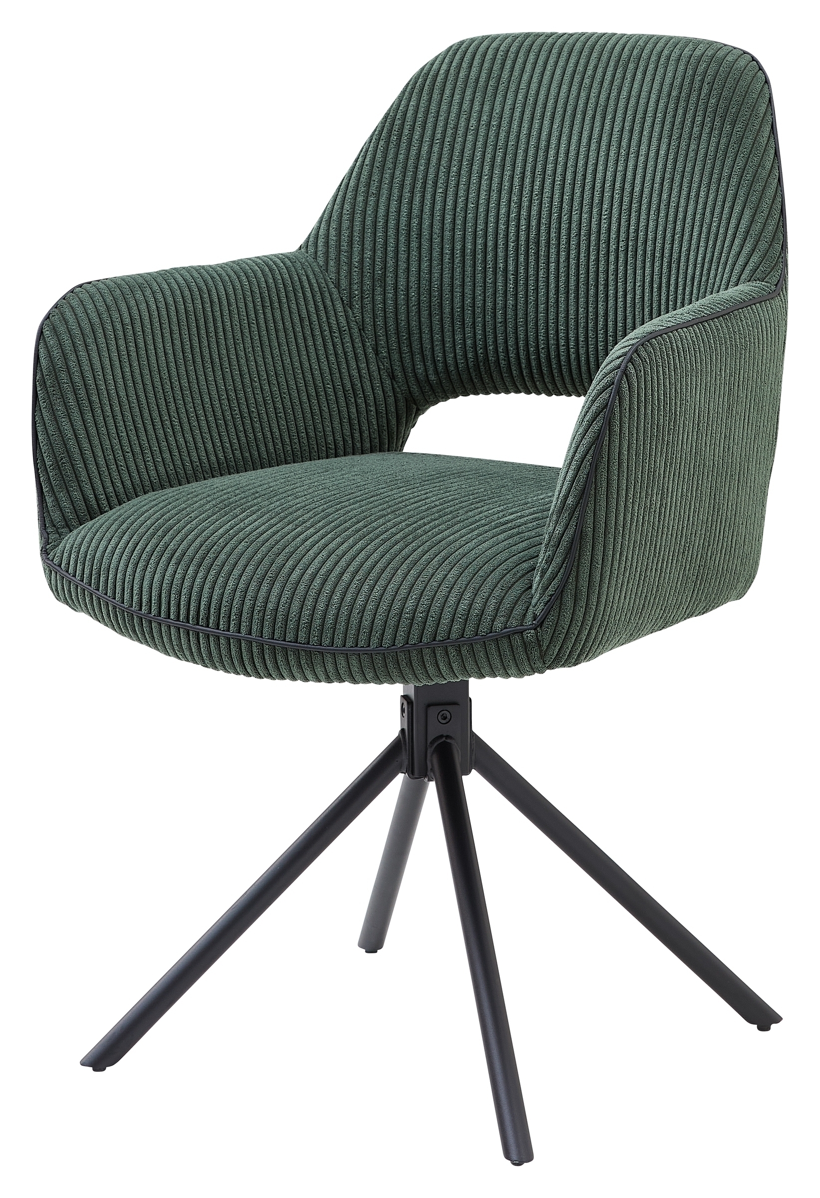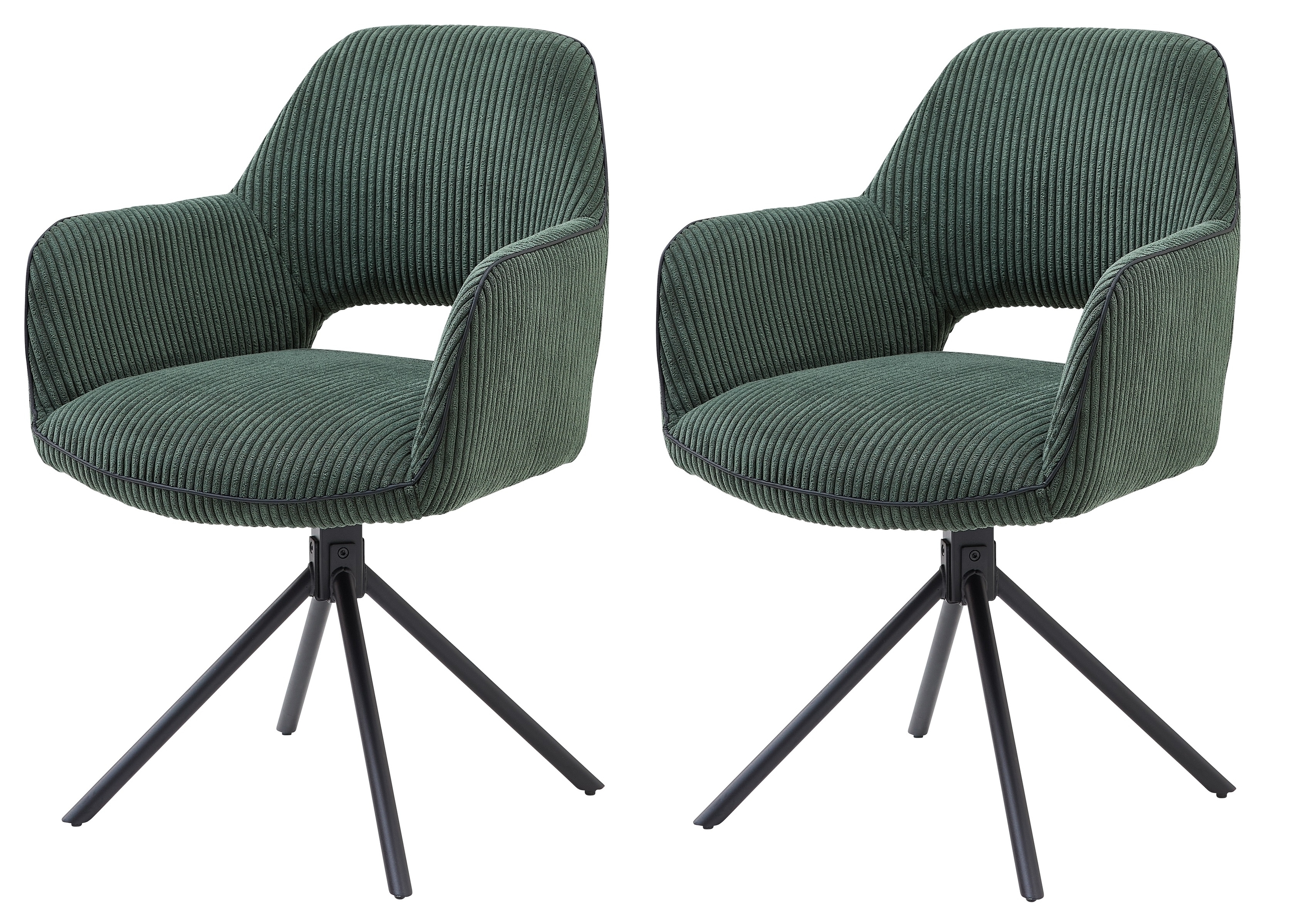 [cWert] => Großzügige Maße von B 63 cm x H 89 cm x T 62 cm bieten viel Platz und Komfort für entspanntes Sitzen.;Stilvoller Armlehnstuhl in dunkelgrünem Cordbezug mit schwarzer Kederabsetzung für eine moderne Wohnatmosphäre.;Robustes Spider Gestell aus schwarzem Metall mit mattem Finish für Stabilität und zeitgemäßes Design.;Besondere Funktion: 180 Grad drehbar mit Auto-Return für Flexibilität und einfache Handhabung im Alltag.;Zerlegter Lieferzustand für einfache Montage zuhause. Ideal als 2er Set für Wohnzimmer oder Essbereich.