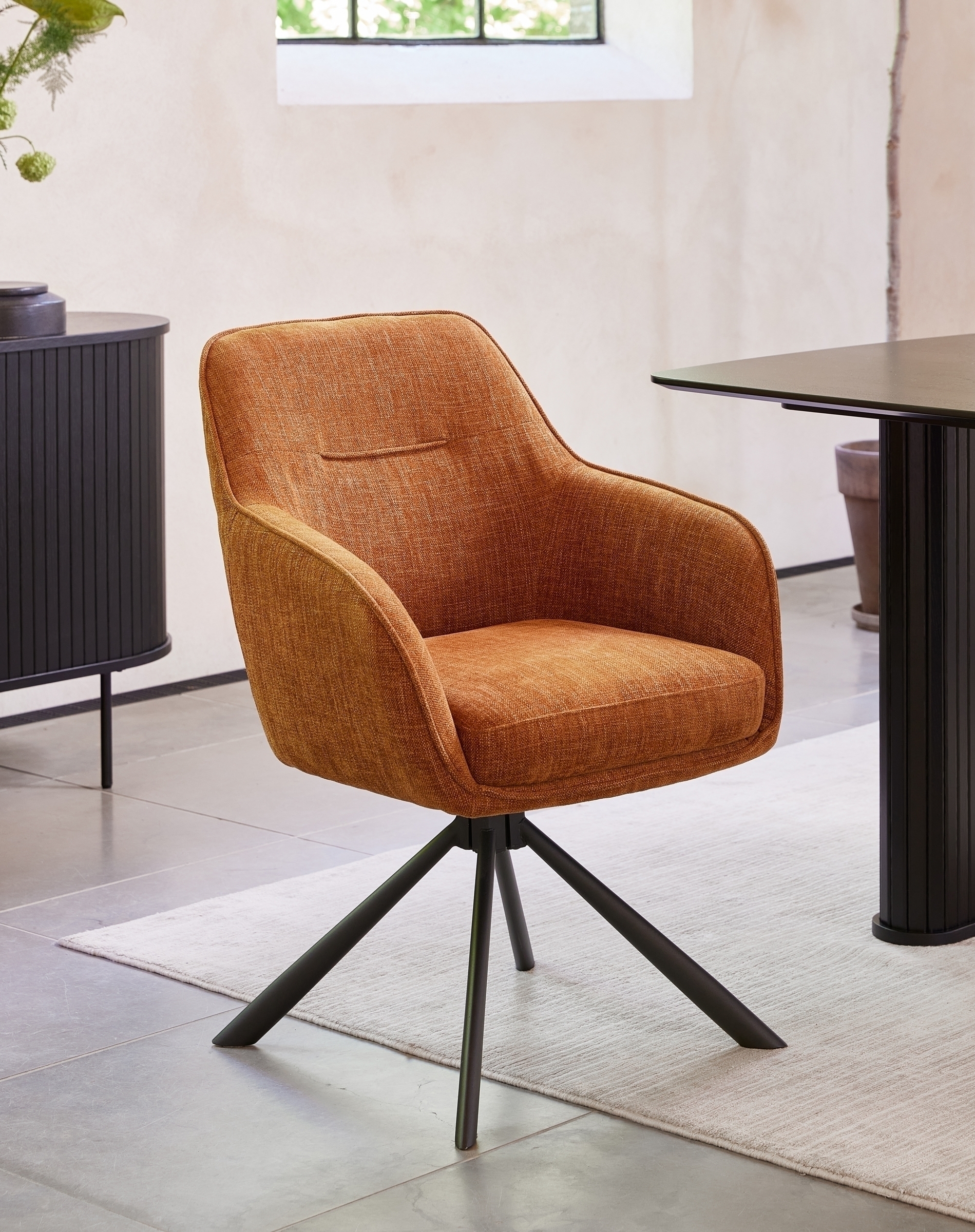 Besonders komfortabel wird Marilla durch die Taschenfederkern-Polsterung in der Sitzschale, die angenehm nachgibt und Sie zuverlässig unterstützt. Die 360° drehbare Sitzschale mit Auto-Return-Funktion sorgt dafür, dass der Stuhl nach dem Aufstehen automatisch in seine Ausgangsposition zurückkehrt – ideal für Essbereiche, Homeoffice oder Konferenzräume.