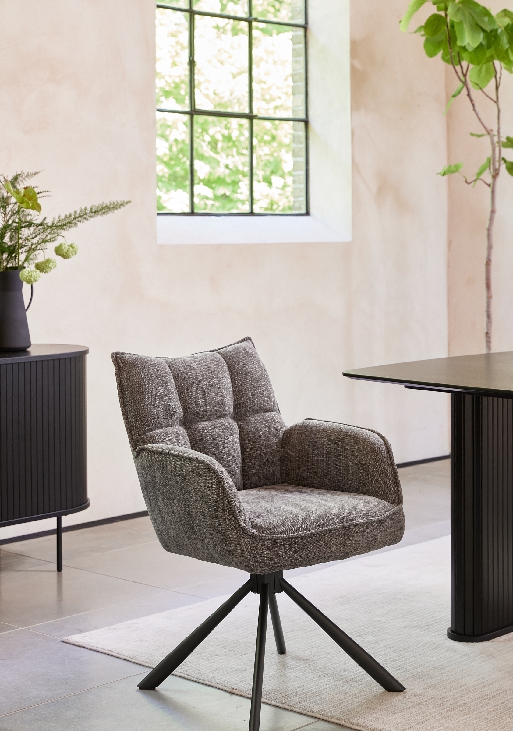 Der Bezug aus 100 % Polyester in Chenille-Optik mit optischem Antik-Effekt wirkt elegant und wohnlich zugleich, während das moderne schwarze Spider-Gestell aus Metall für Stabilität und eine maximale Belastbarkeit von 110 kg sorgt. So fügt sich Marilla mühelos in moderne Raumkonzepte ein und bleibt auch bei intensiver Nutzung lange schön.