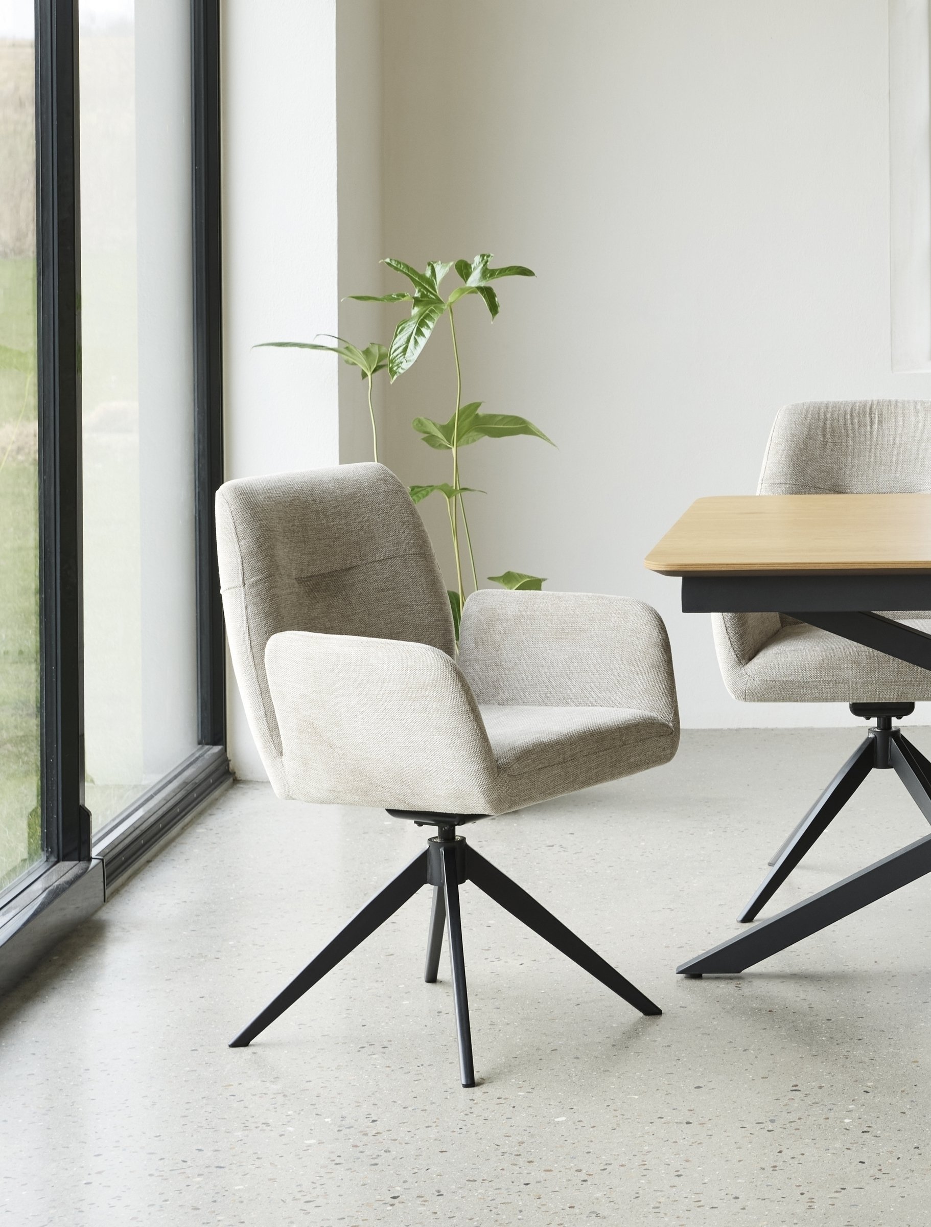 Ein besonderes Highlight ist die integrierte 360° Drehfunktion, die in Kombination mit der Wipp-Relax-Funktion für Bewegungsfreiheit und Flexibilität am Tisch sorgt. So können Sie sich bequem drehen, ohne den Stuhl verrücken zu müssen, und genießen gleichzeitig ein lockeres, entspanntes Sitzgefühl. Damit eignet sich ROXANA ideal für moderne Essbereiche, in denen Komfort und Funktionalität gefragt sind.