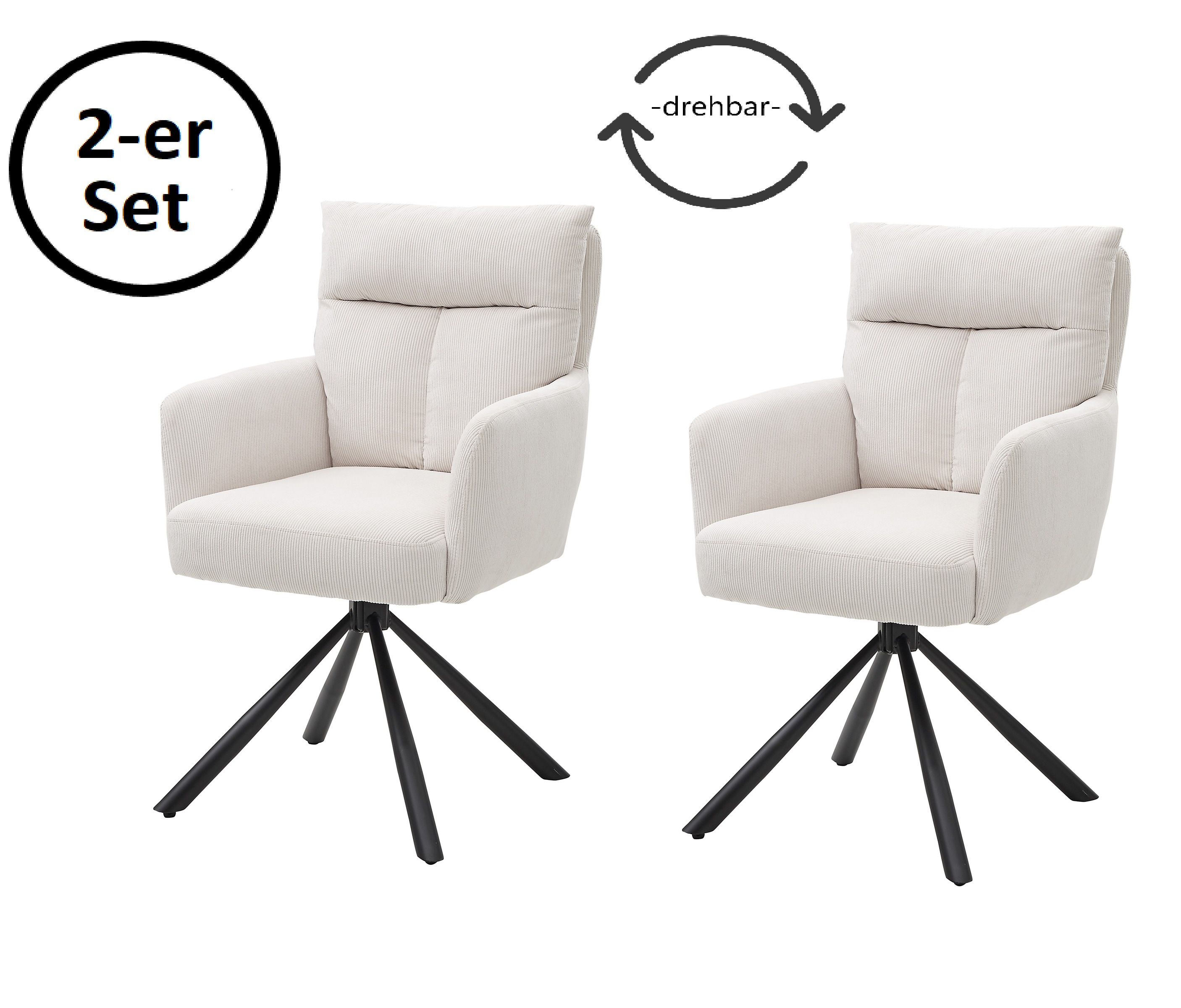 Sofia von freiraum – Armlehnstuhl im 2er Set mit Drehfunktion und Cordbezug
