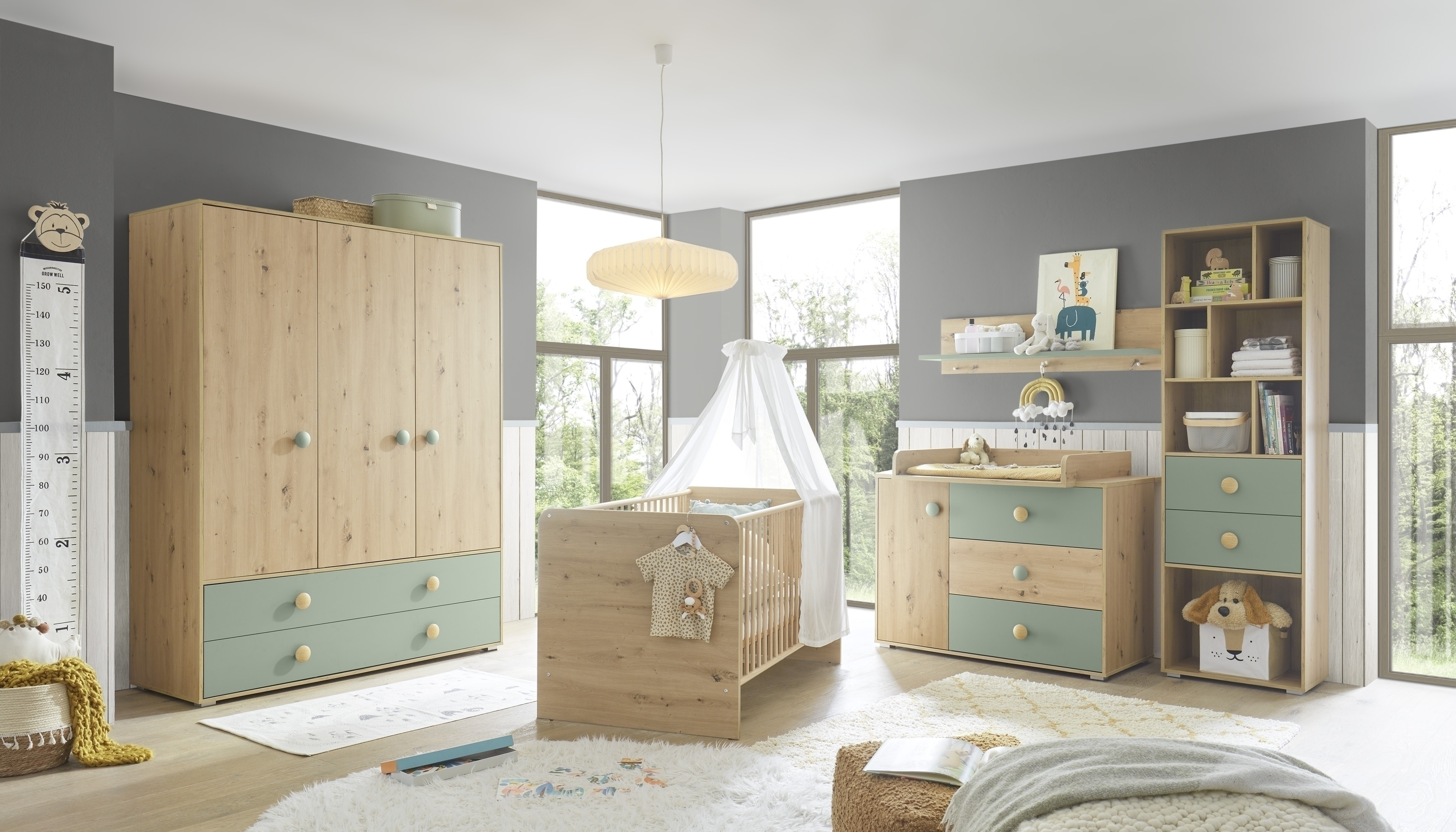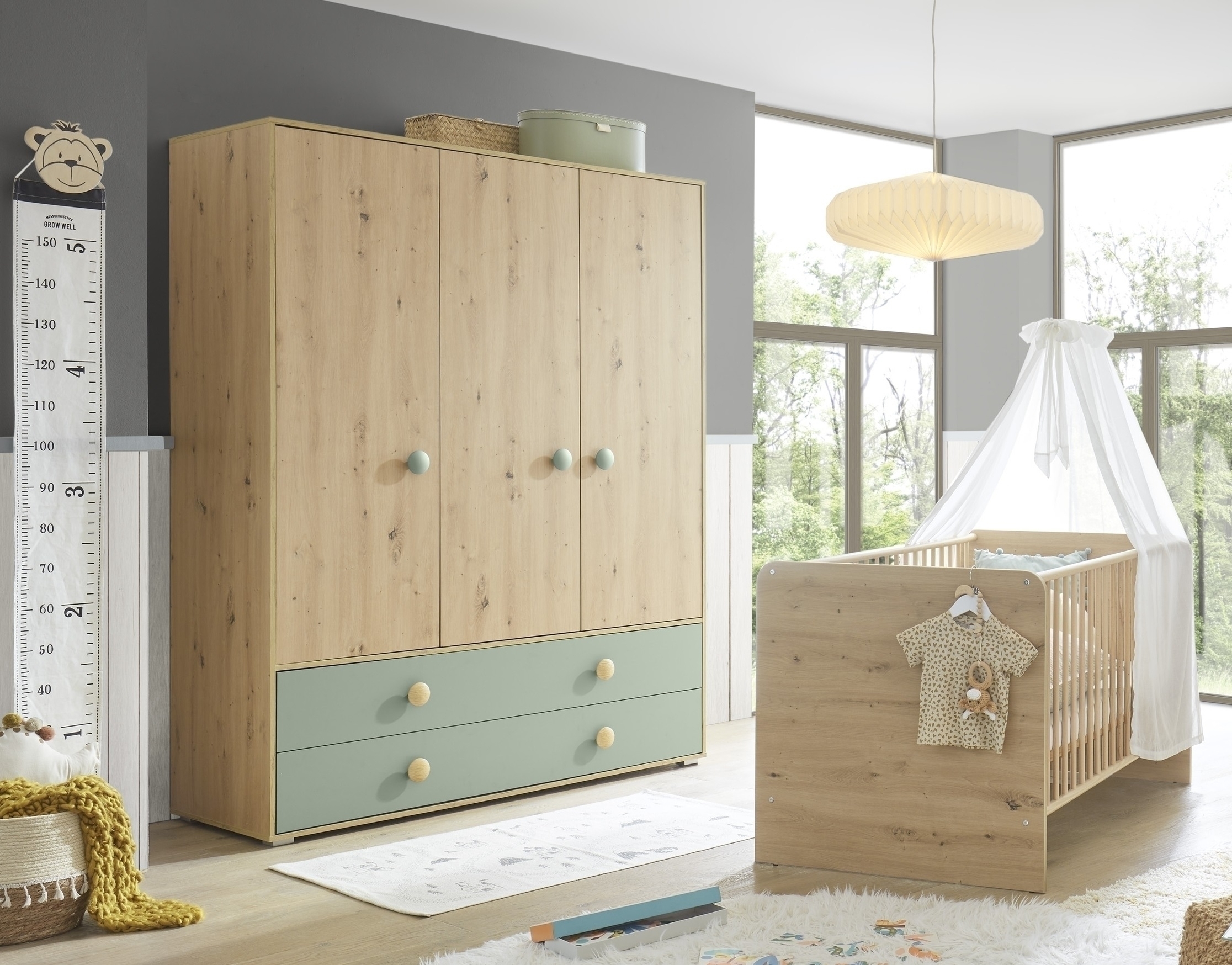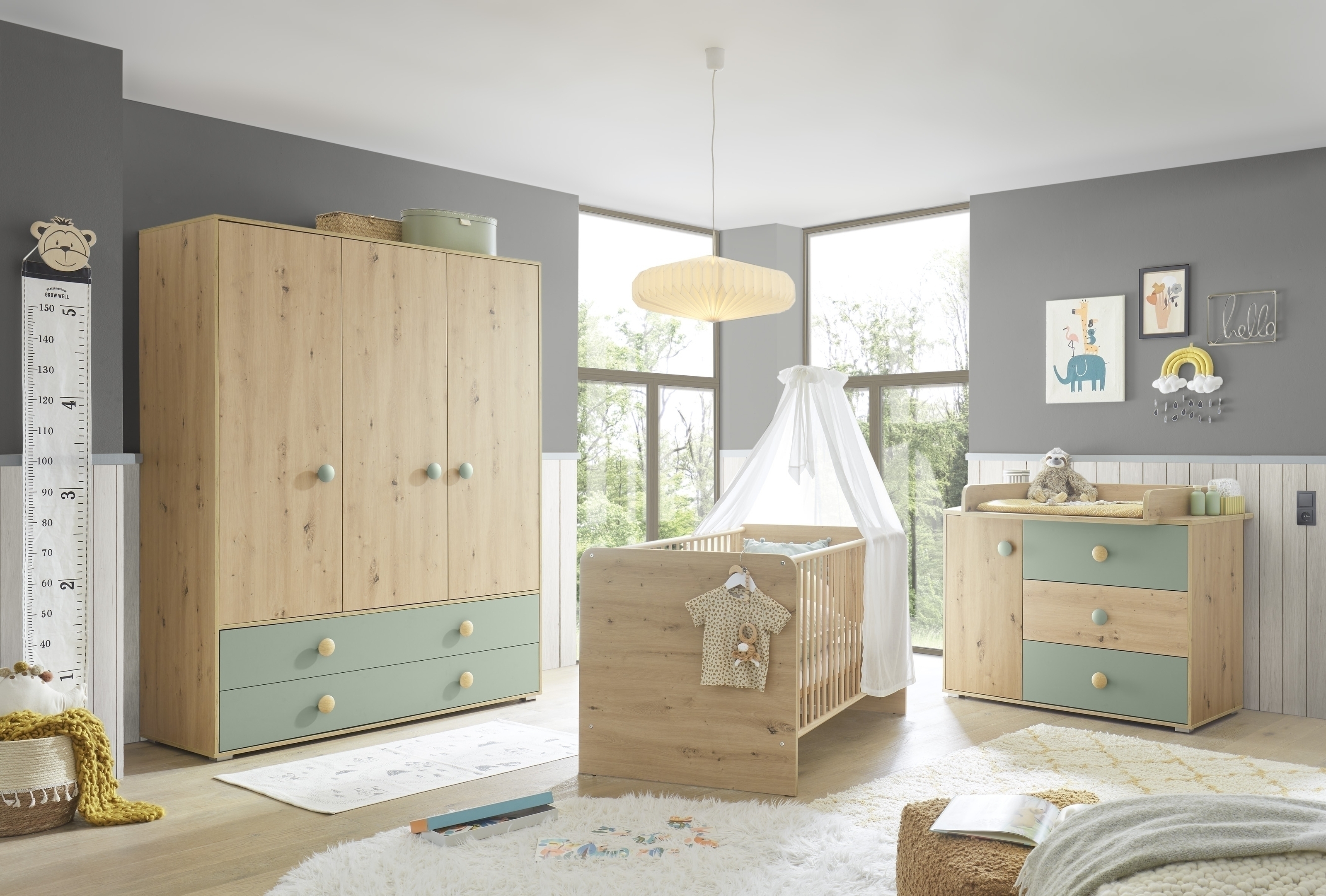 ✔Die zeitlose Kombination aus Artisan Eiche Dekor und Salbei fügt sich harmonisch in moderne Baby- und Kinderzimmer ein.
