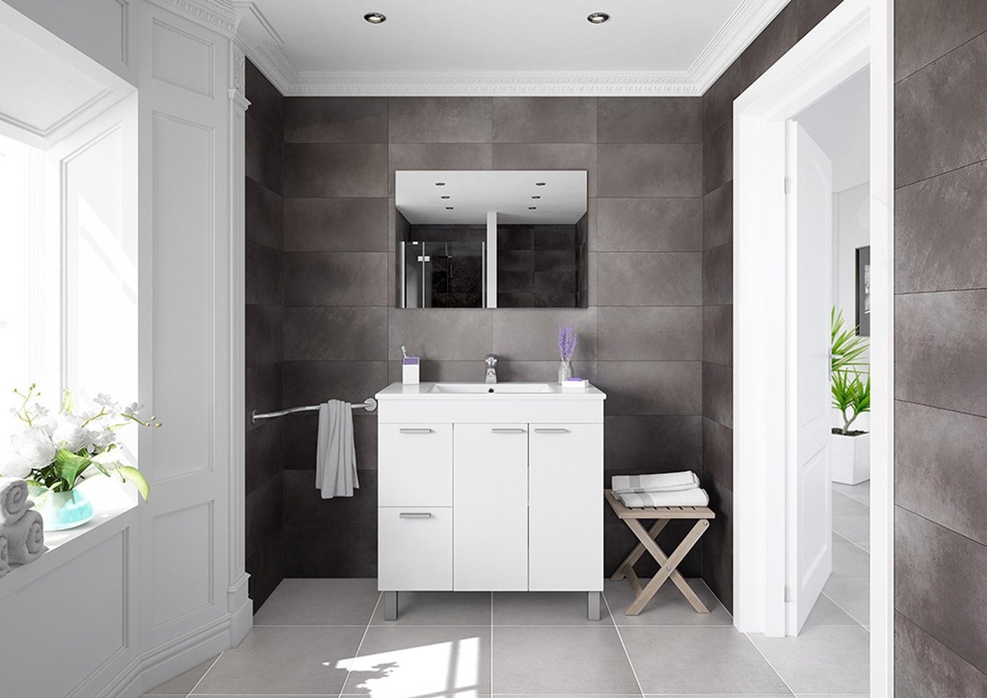 Mit 80 cm Breite und zusätzlichem Innenraum in Türen und Schubladen schaffen Sie Ordnung im Badezimmer.
