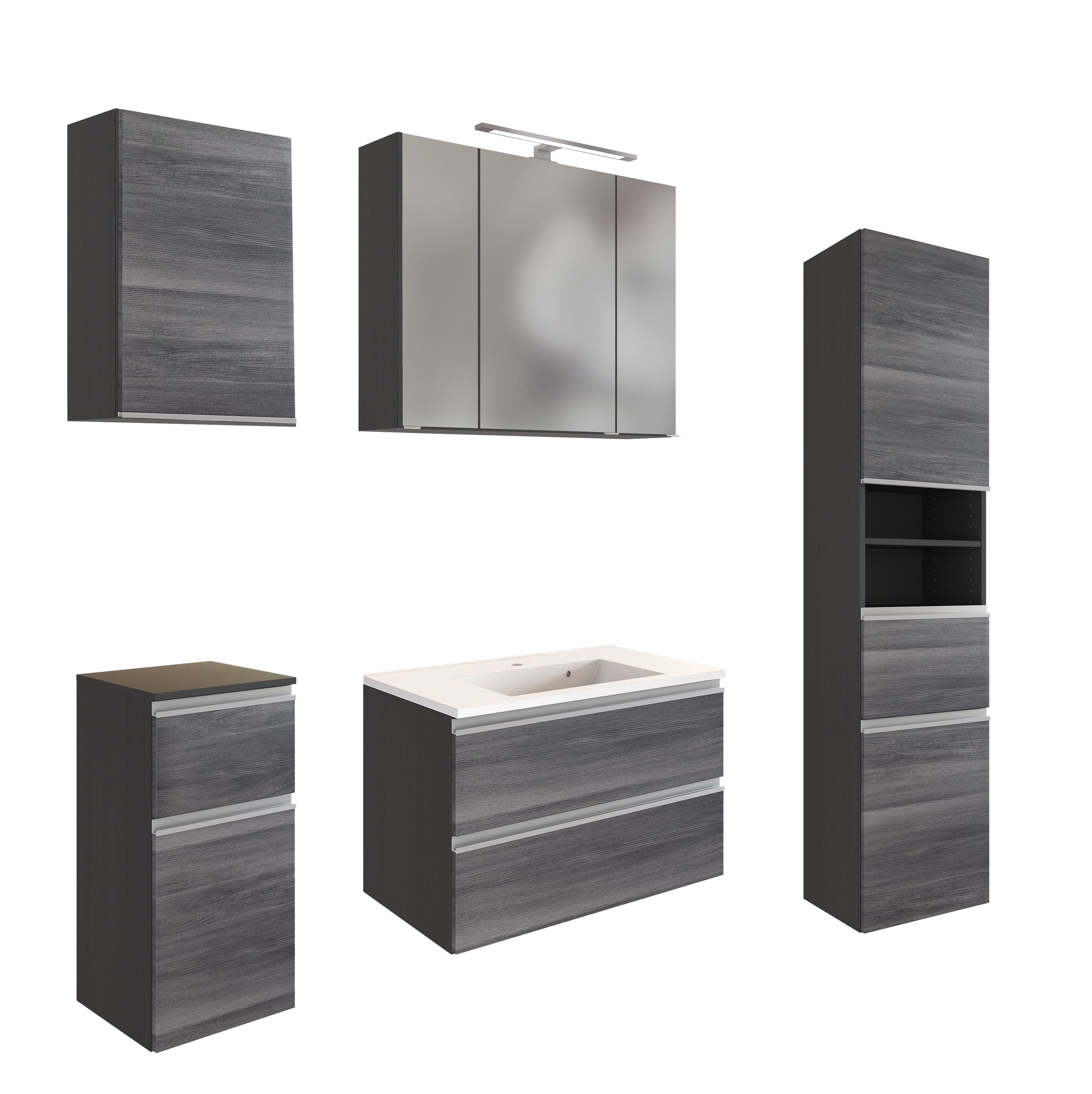 [cSeo] => Badezimmer-Set-Arezzo-in-Eiche-Rauchsilber-Nachbildung-Graphit