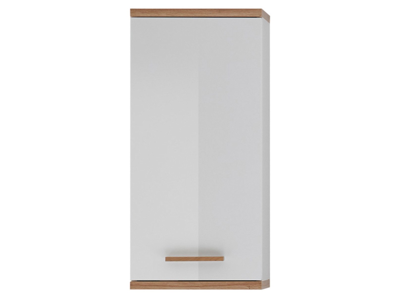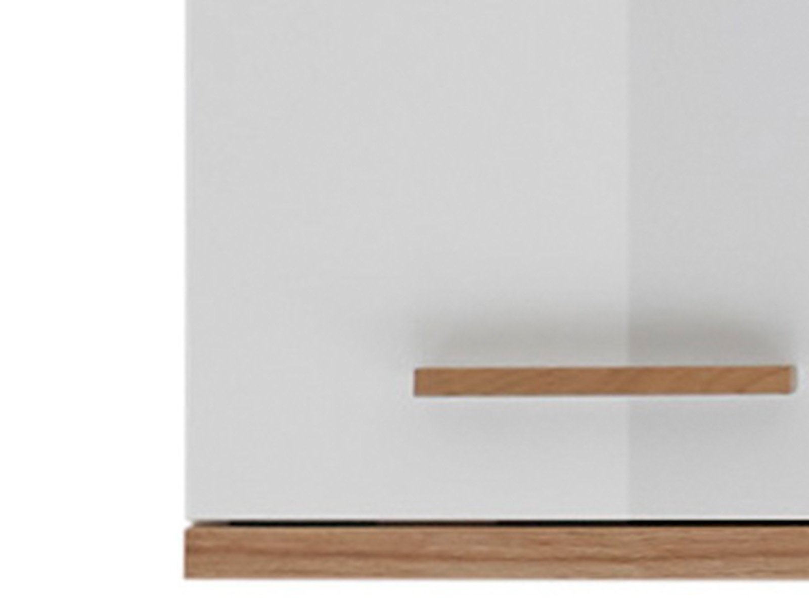 [metaDescription] => Hängeschrank aus Spanplatte melaminharzbeschichtet, Korpus in weiß-glänzend und Front in weiß-Hochglanz, Absetzungen/Griff aus Massivholz in Eiche Riviera q