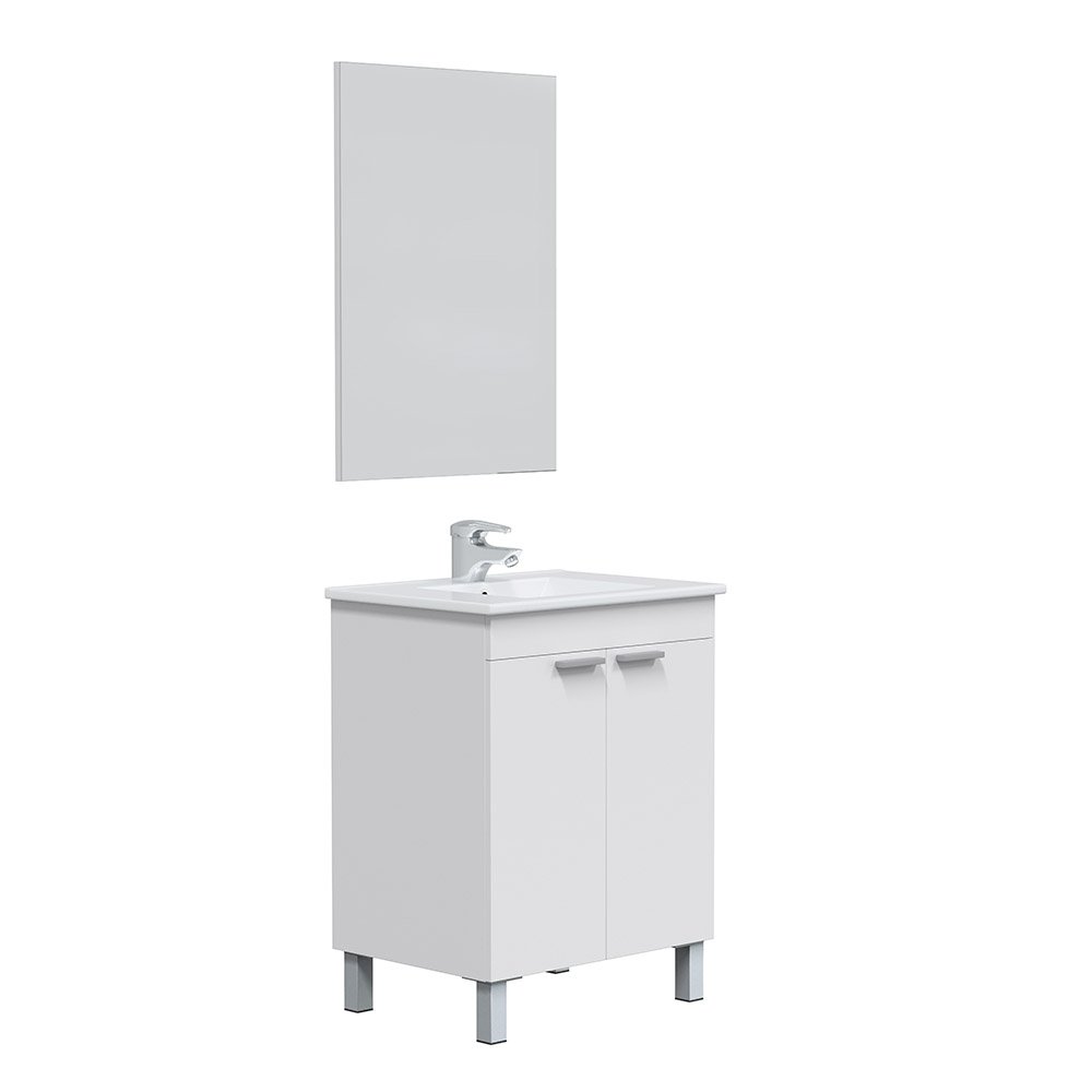 Das Badmöbel-Set LC1 wird in Spanien gefertigt und steht damit für präzise Verarbeitung und verlässliche Qualität. Geliefert wird der Waschtischunterschrank zerlegt, das Waschbecken ist separat und sicher geschützt verpackt. Im Lieferumfang enthalten sind der Unterschrank, das Waschbecken und der Spiegel; Wasserhahn, Siphon, Ventil und Beleuchtung sind nicht inbegriffen und können ganz nach Ihren individuellen Vorstellungen ergänzt werden.