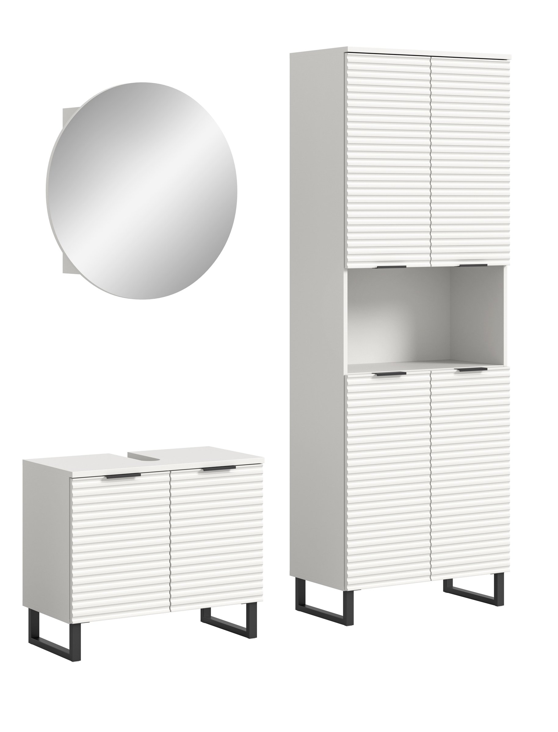 [cKurzbezeichnung] => Badezimmer-Set >Riff< (3-teilig) wertige Rillenoptik Weiß / Spiegel - 155x193x34cm (BxHxT)