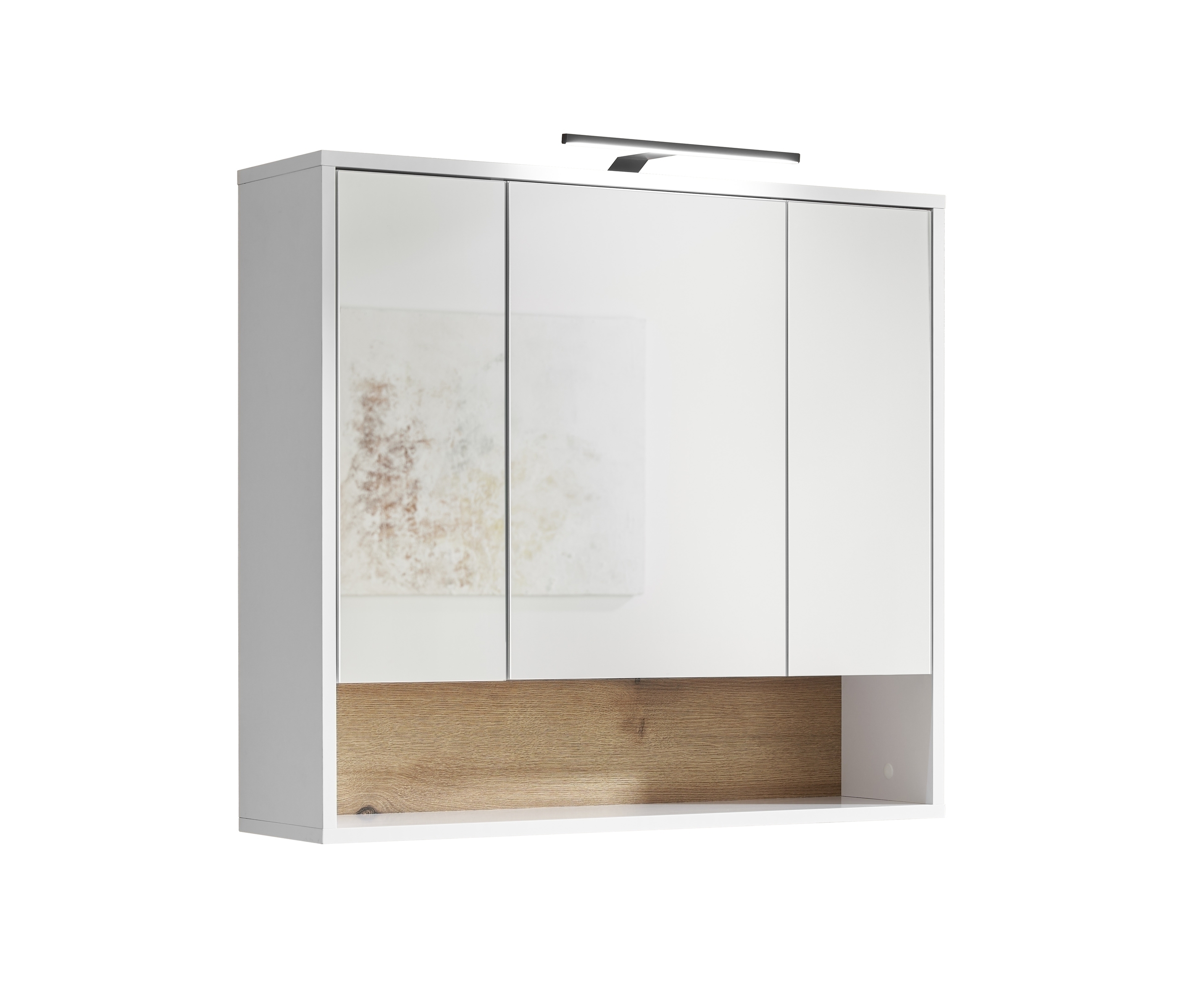 [cSeo] => Badezimmerspiegelschrank-Liguria-in-Weiss-Evoke-Eiche-Dekor-80x72x21cm-BxHxT