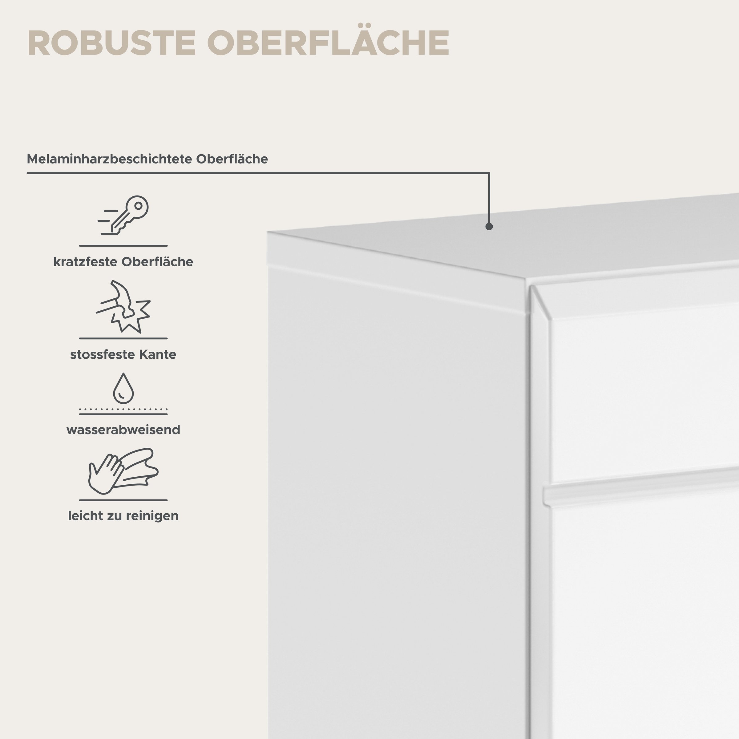 Melaminbeschichtete Spanplatten lassen sich leicht reinigen und bieten langlebige Qualität im Alltag.