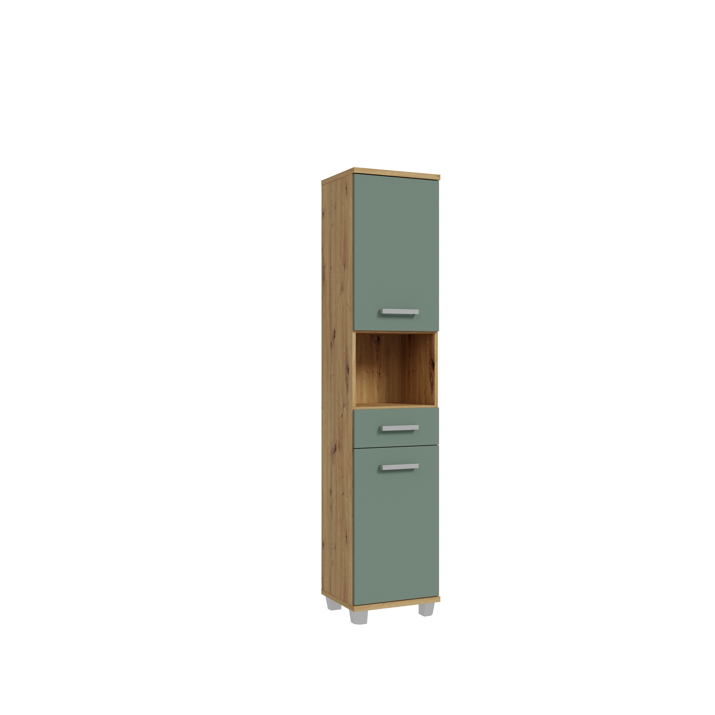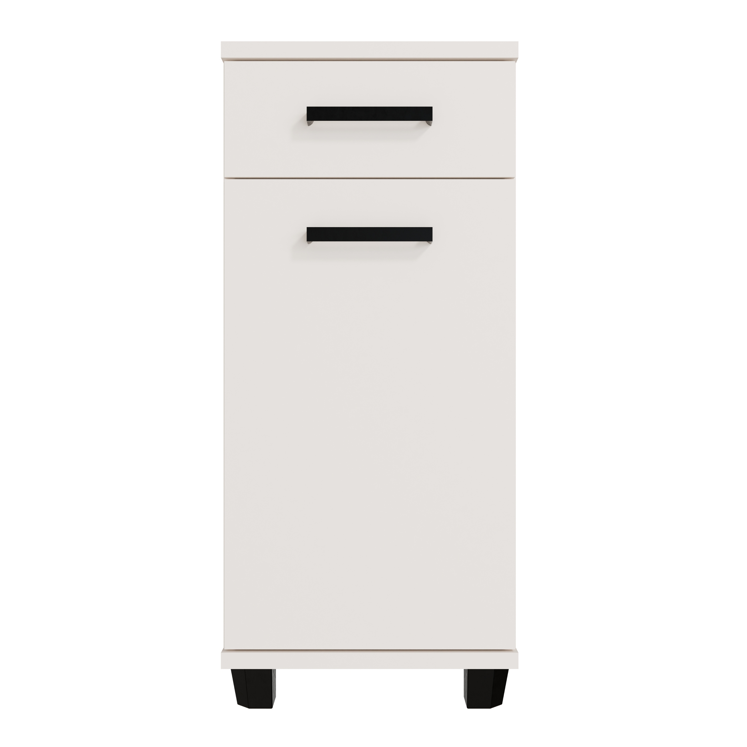 [Bullet-Point 2] => Der Korpus und die Front bestehen aus robuster Spanplatte mit pflegeleichtem Folie-Finish, Rückwand aus lackierter HDF-Platte für Stabilität.