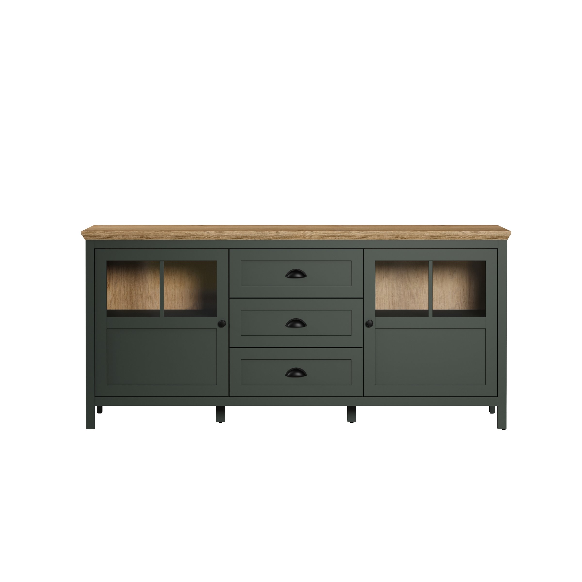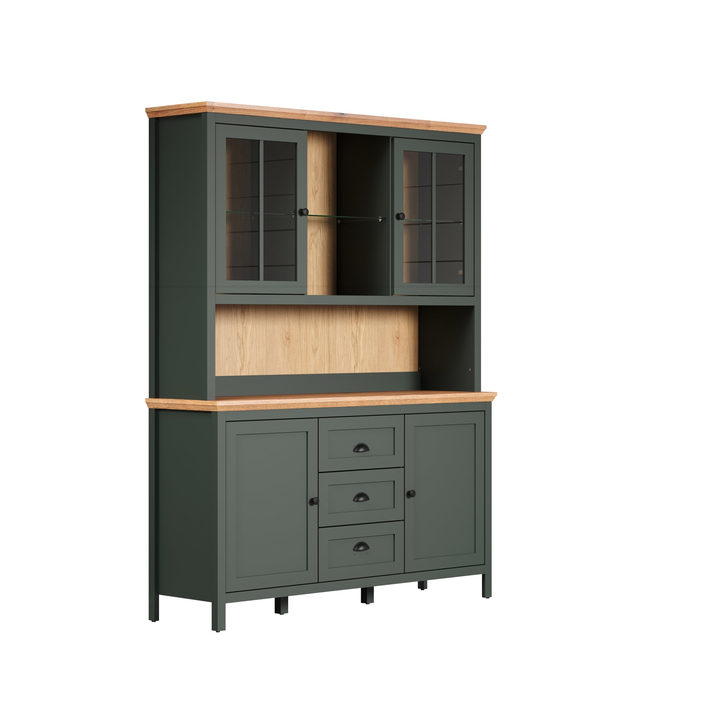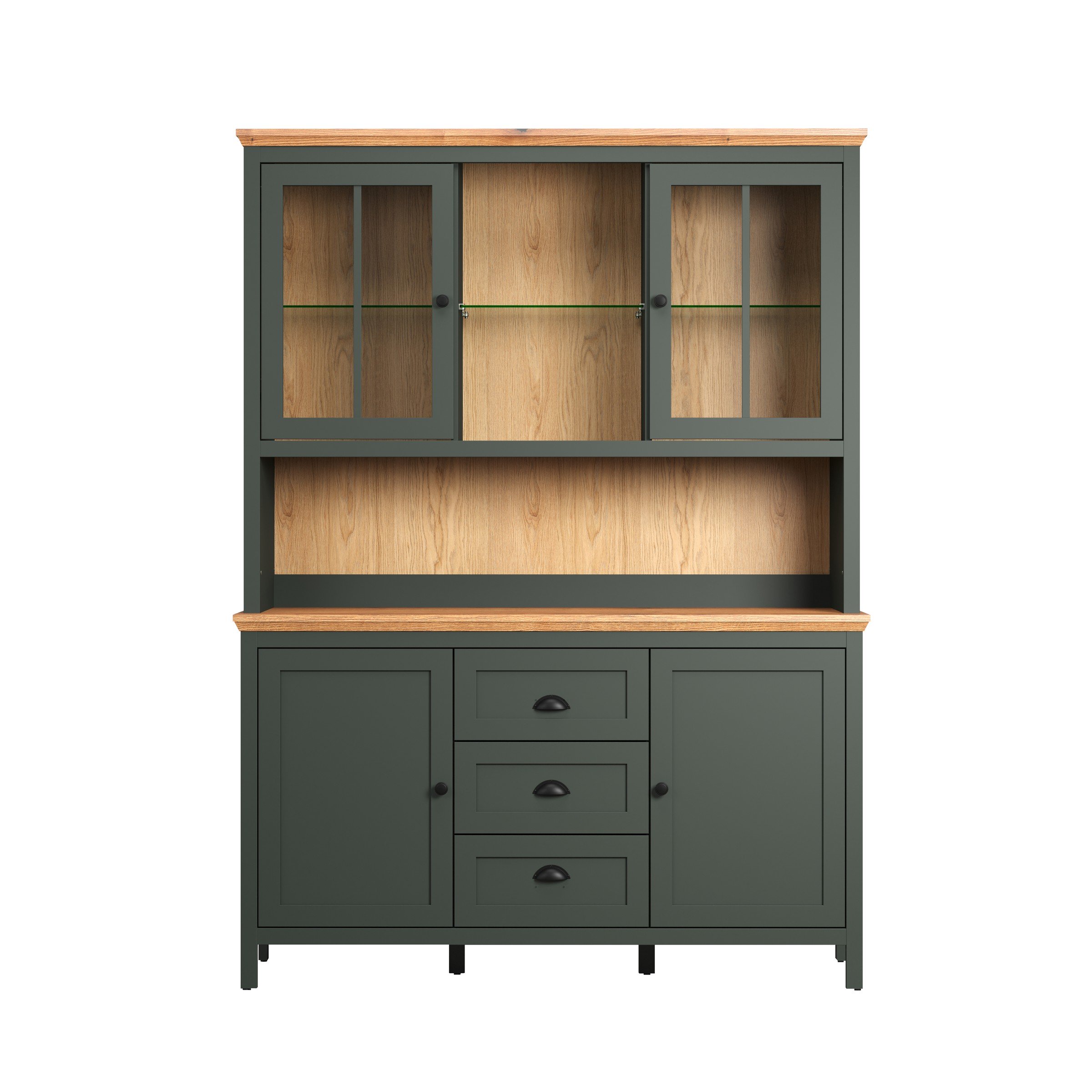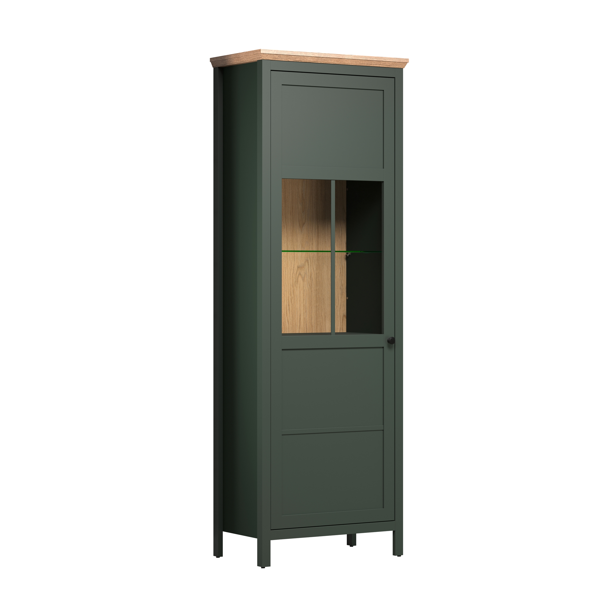 [cKurzbezeichnung] => Vitrine >Stanton< in Tannengrün / Eiche - 69x198x39cm (BxHxT)
