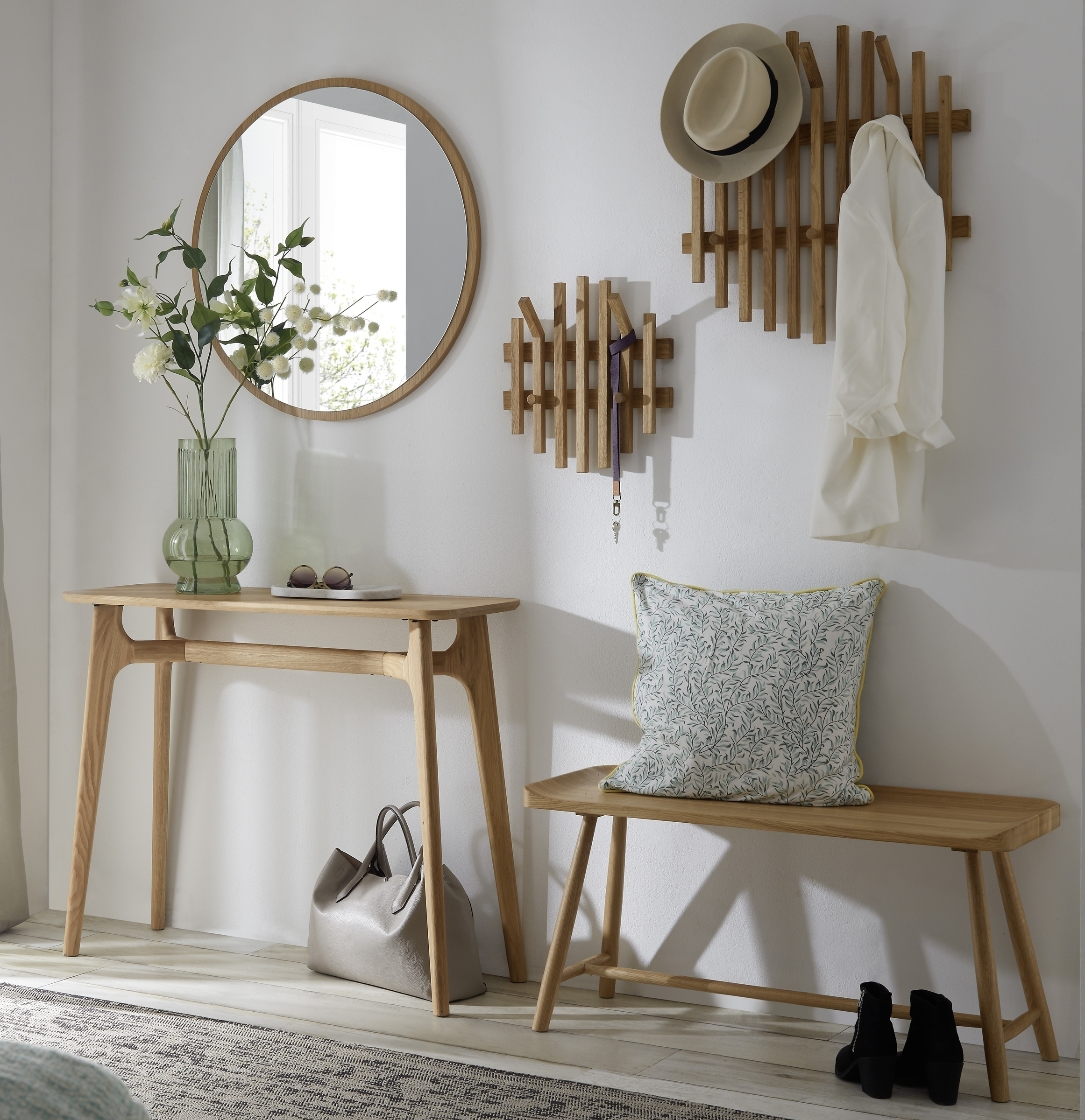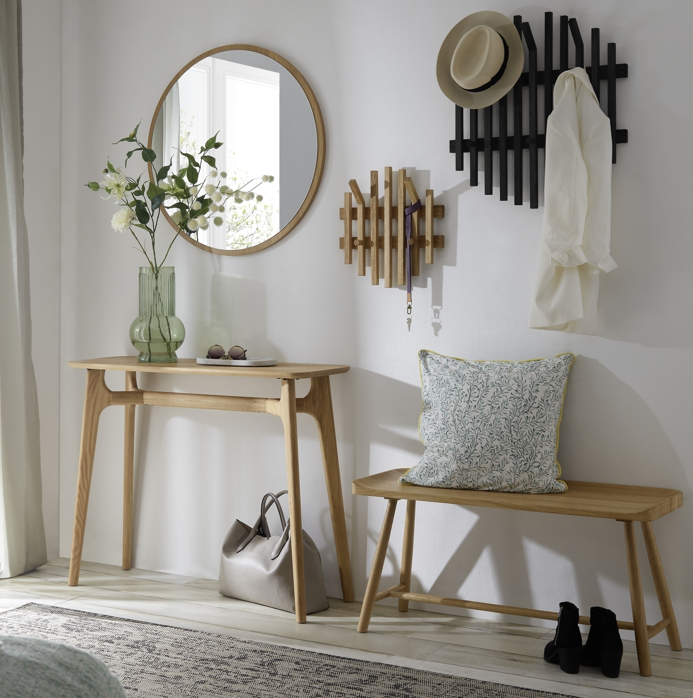 Die Bank aus geölter Eiche in holzfarben fügt sich harmonisch in verschiedenste Einrichtungsstile ein.