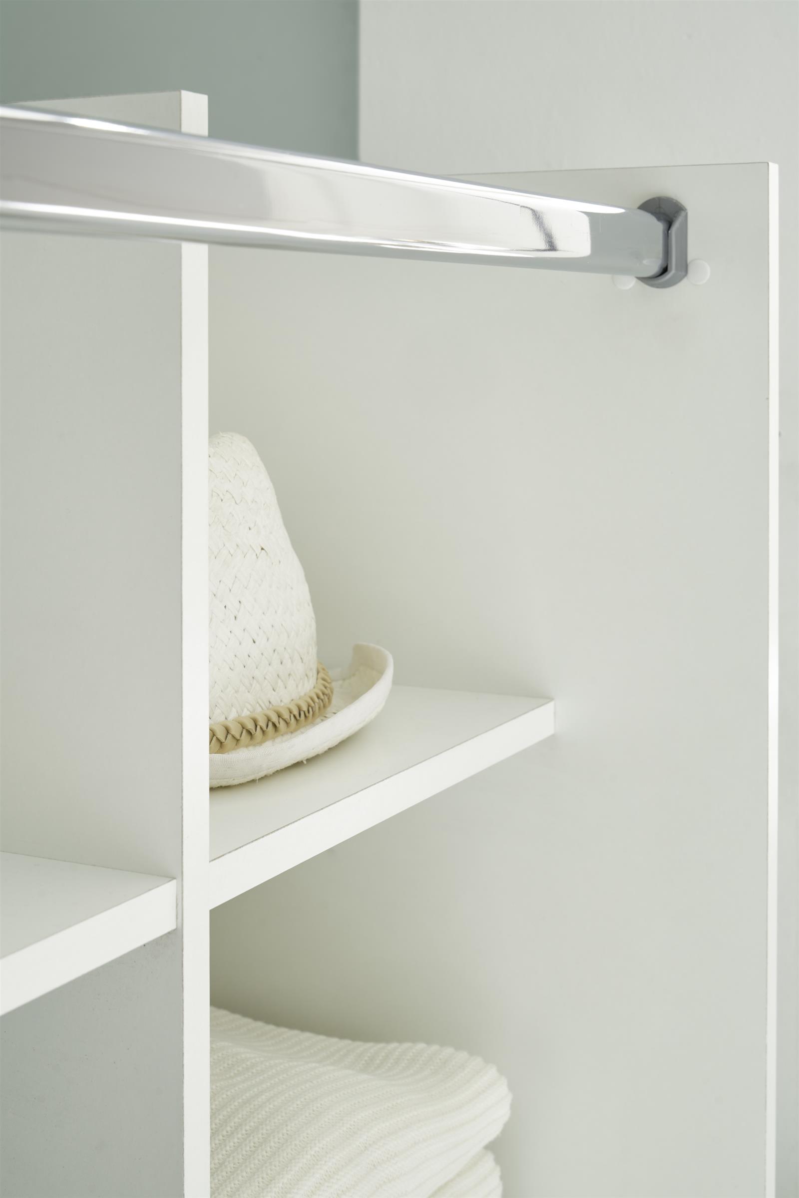 Im Inneren verfügt "Jill II" über 1 Kleiderstange, 2 Einlegeböden, 3 Konstruktionsböden und insgesamt 7 Fächer, sodass Sie Kleidung und Wäsche gut sortieren können.