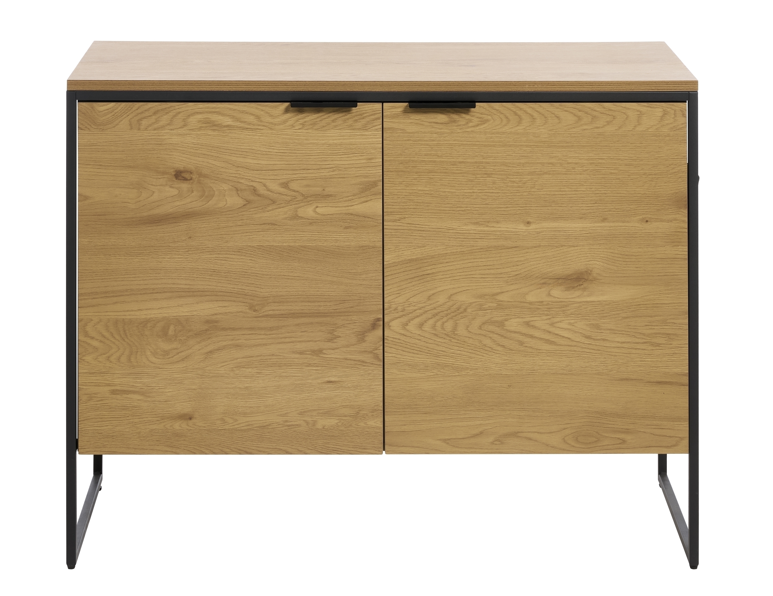 [BulletPoints] => Maße B/H/T 155/80,6/45 cm – Kommode CESURA in Eiche Natur mit schwarzem Metallgestell und 2 Türen, pflegeleichte melaminbeschichtete Flächen, modernes Design.;Material & Farbe: Spanplatte mit Melamin in Eiche Natur, schwarze Griffe, stabiles Metallgestell – pflegeleicht, langlebig und passend für moderne Einrichtungen.;Klares Design mit 2-Bein-Gestell aus schwarzem Metall: stabile Basis und zwei Türen für geschlossenen Stauraum – ideal für ein ordentliches, modernes Wohnzimmer.;Materialmix aus Eiche Natur und schwarzem Metall macht CESURA zum Blickfang und sorgt für eine einladende Atmosphäre in modernen Wohnbereichen mit stilvollem Charakter.;Kommode CESURA wird zerlegt geliefert und lässt sich einfach montieren – alle Teile sind im Lieferumfang enthalten, sodass die Selbstmontage schnell und unkompliziert möglich ist.