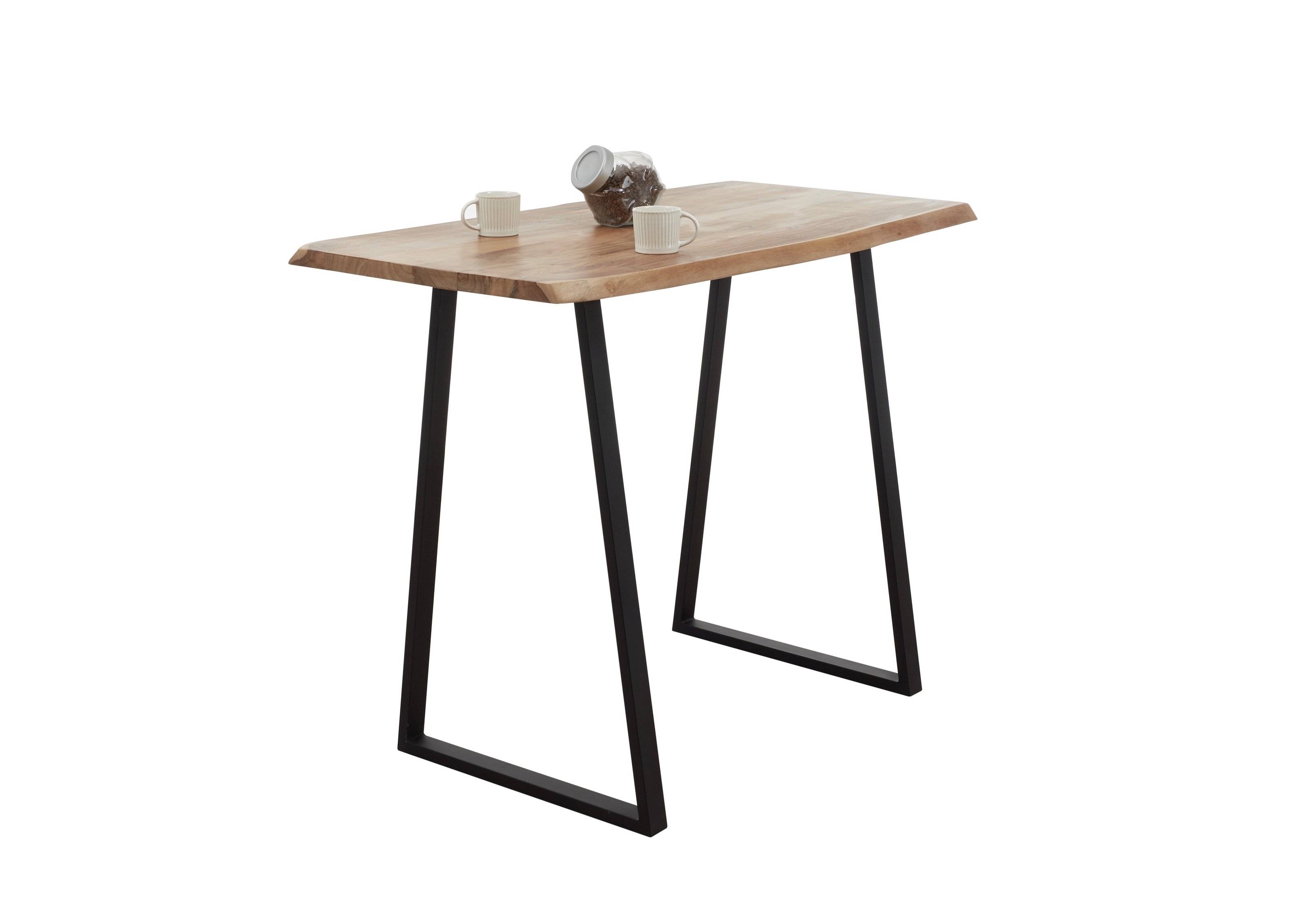 Der moderne Bartisch von möbelando verbindet eine massive Akazienholzplatte mit einem stabilen Metallgestell in Schwarz und wird so zum stilvollen Mittelpunkt in Küche oder Wohnbereich. Mit seinen kompakten Maßen eignet er sich ideal als Bartisch oder Küchentisch für gesellige Runden und den gemütlichen Alltag.