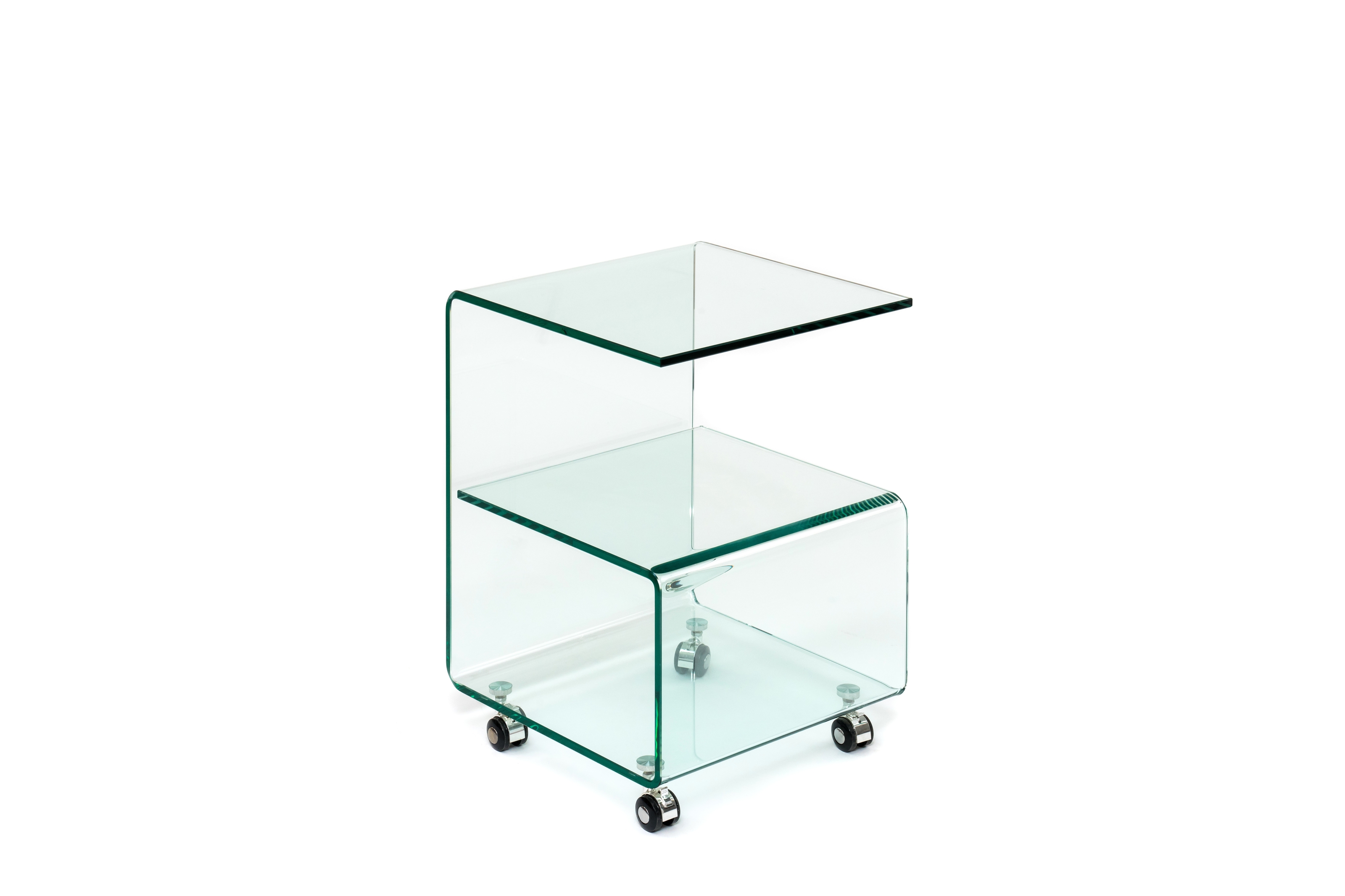 Eleganter Beistelltisch aus Klarglas mit Rollen