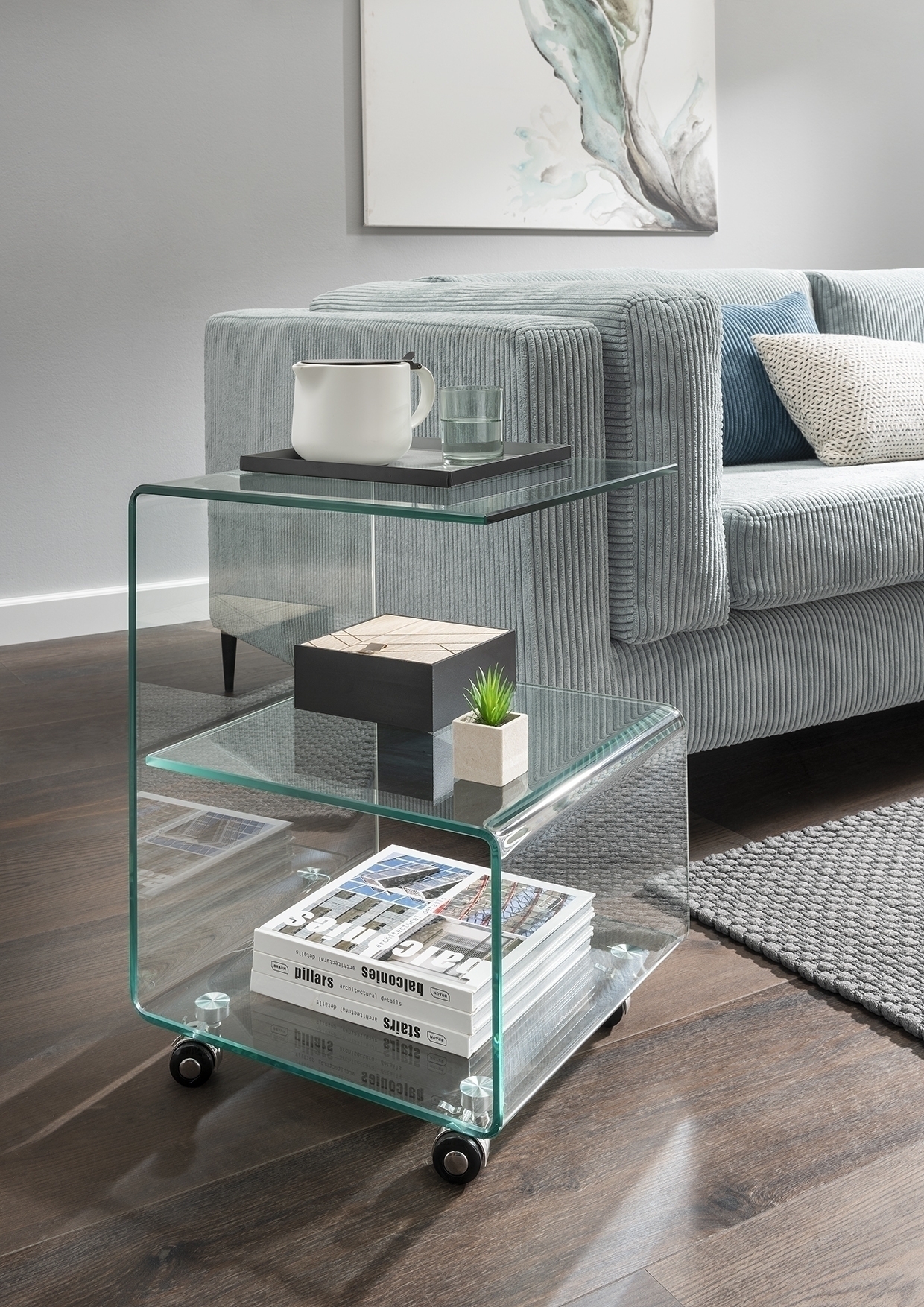 freiraum Beistelltisch 7/110 – Glastisch mit Rollen und Ablagefläche