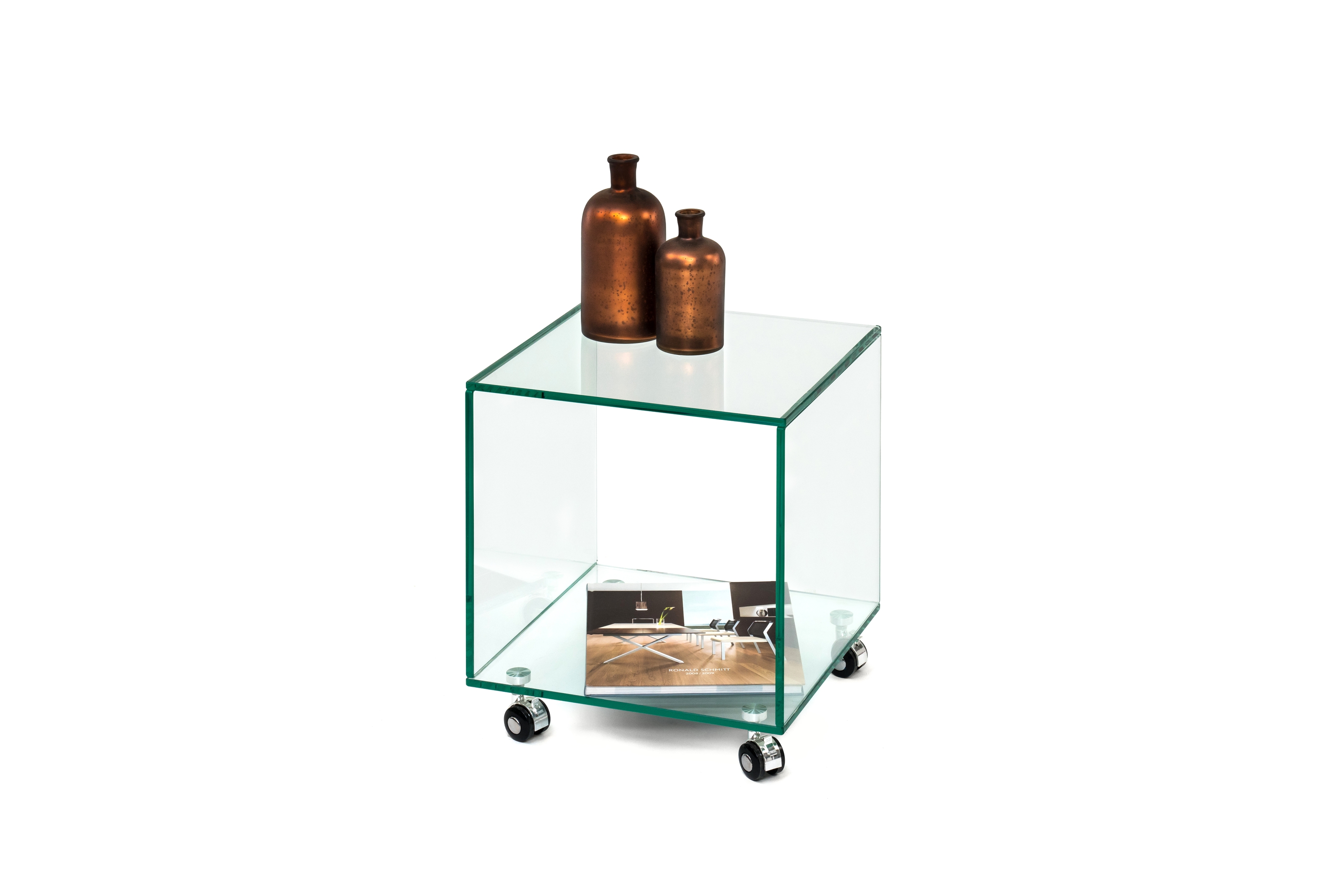 freiraum Beistelltisch 7/177 – Glas-Beistelltisch mit Rollen und 2 Ablagen