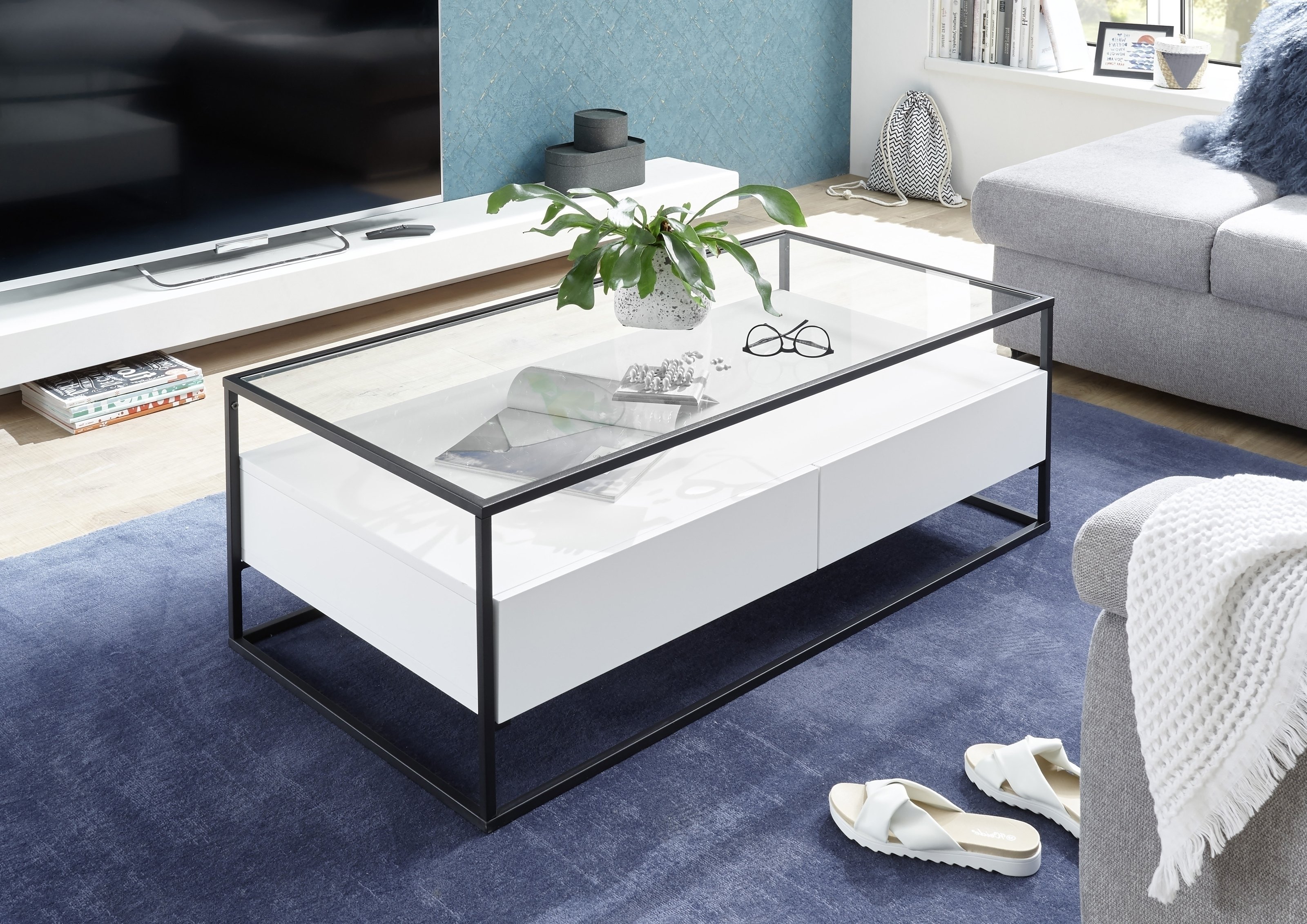 [1] => Couchtisch-EVORA-2-Schuebe-Ablage-weiss-Glas-120x40x60-BxHxT