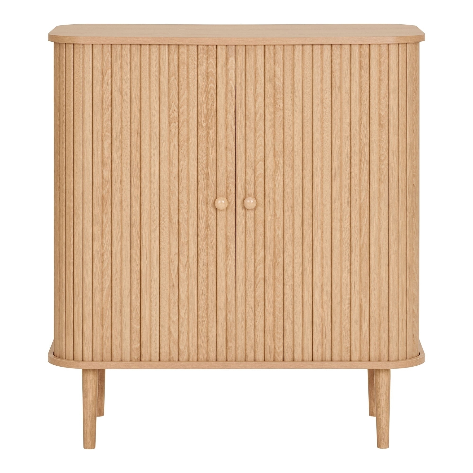 Beistelltisch Nikko – skandinavischer Beistelltisch mit Jalousientüren und Stauraum