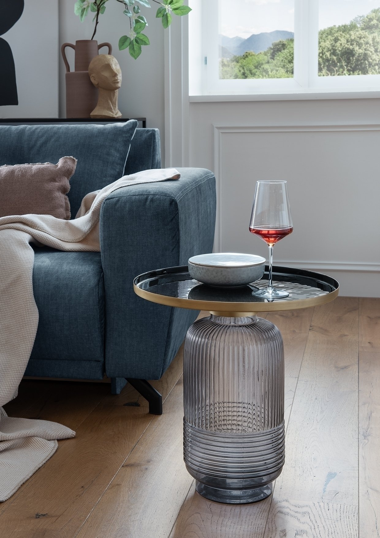 Mit 43 cm Durchmesser und 59 cm Höhe passt der Beistelltisch auch in kleinere Wohnbereiche.