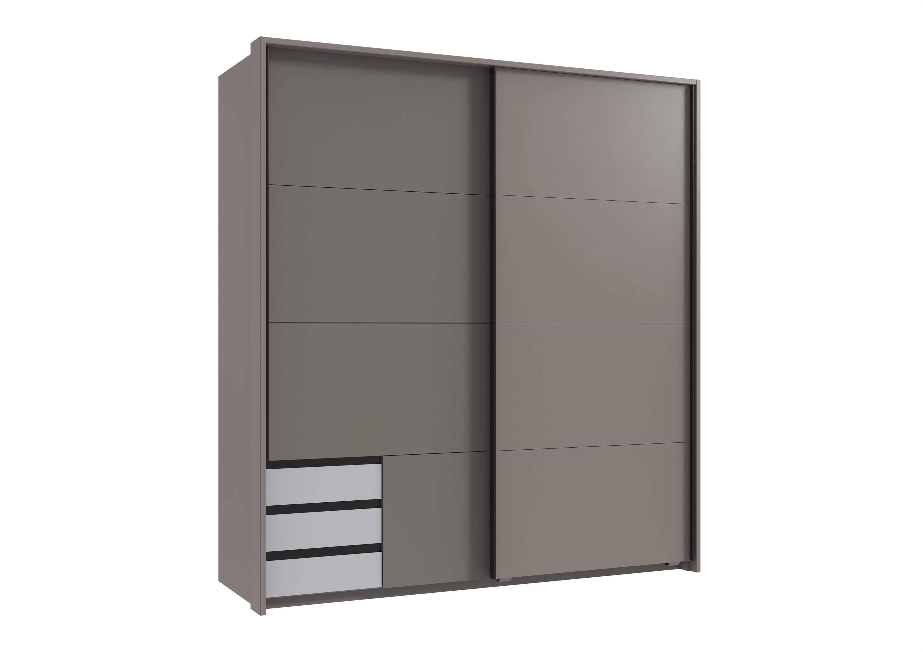 [BulletPoints] => Maße ca. 179/198/65 cm (B/H/T) – großzügiger Schwebetürenschrank mit 2 Türen, 3 Schubladen und viel Stauraum für moderne Kinder- und Jugendzimmer.;Modernes Design in SAHARAGRAU + WEISS mit Griffen in GRAFIT – stilvolle Optik passend zu zeitgemäßen Jugendzimmer Möbeln.;2 Einlegeböden (je ca. 87 cm) und 2 Kleiderstangen (je ca. 87 cm Länge) – flexible Aufbewahrung für Kleidung und Accessoires.;Robuste Holzwerkstoff-Spanplatte – pflegeleichtes, langlebiges Material ideal für den täglichen Einsatz im Jugend- und Kinderzimmer.;Lieferung in 6 Paketen, Gewicht ca. 143,5 kg, zerlegt zur Selbstmontage – inklusive Anleitung, ohne Inhalt und Dekoration.