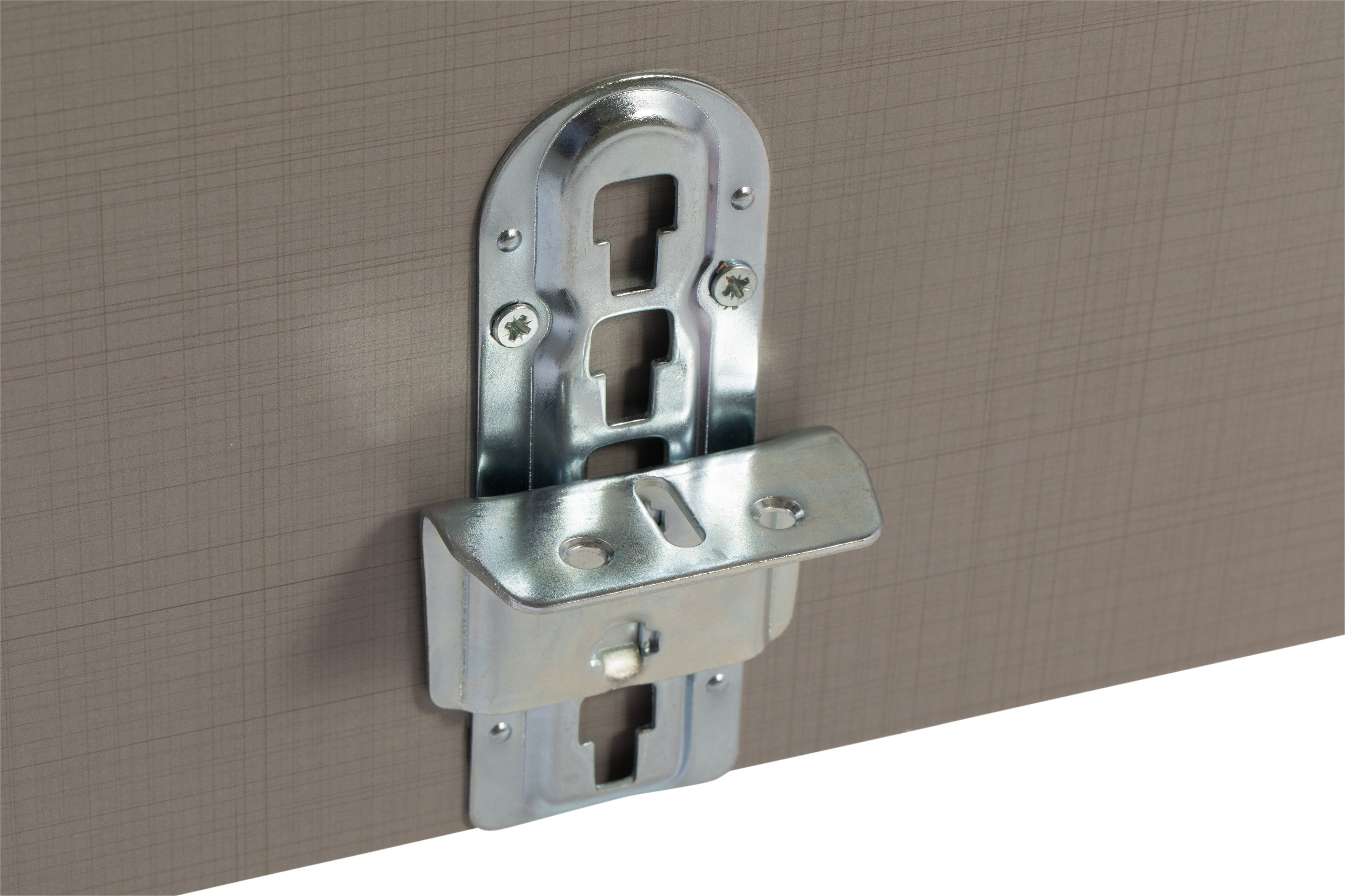 Gefertigt wird das Bettgestell aus Spanplatte E05 in der Farbe Weiß, ergänzt durch ein Innendekor in linegrey. Damit erhalten Sie pflegeleichte Oberflächen, die sich leicht reinigen lassen und gleichzeitig mit einer dezenten, modernen Optik überzeugen. Die verwendeten Beschläge und Aufhängungen aus Aluminium sorgen für zusätzliche Stabilität im täglichen Gebrauch.