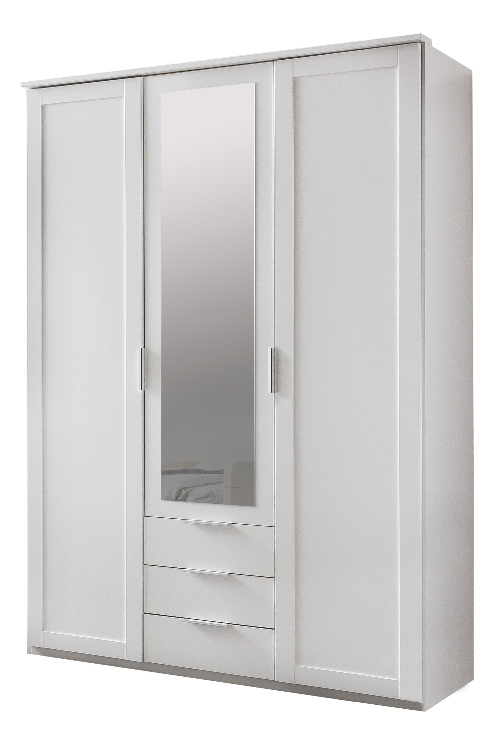 Die in Deutschland hergestellten Möbel der Serie NADJA zeichnen sich durch ihre schlichte, zeitlos moderne Optik in Weiß aus, die Ihr Schlafzimmer optisch aufhellt und eine ruhige Atmosphäre schafft. So entsteht ein harmonisches Gesamtbild, das sich mit weiteren Schränken und Kommoden der Serie perfekt ergänzen lässt.