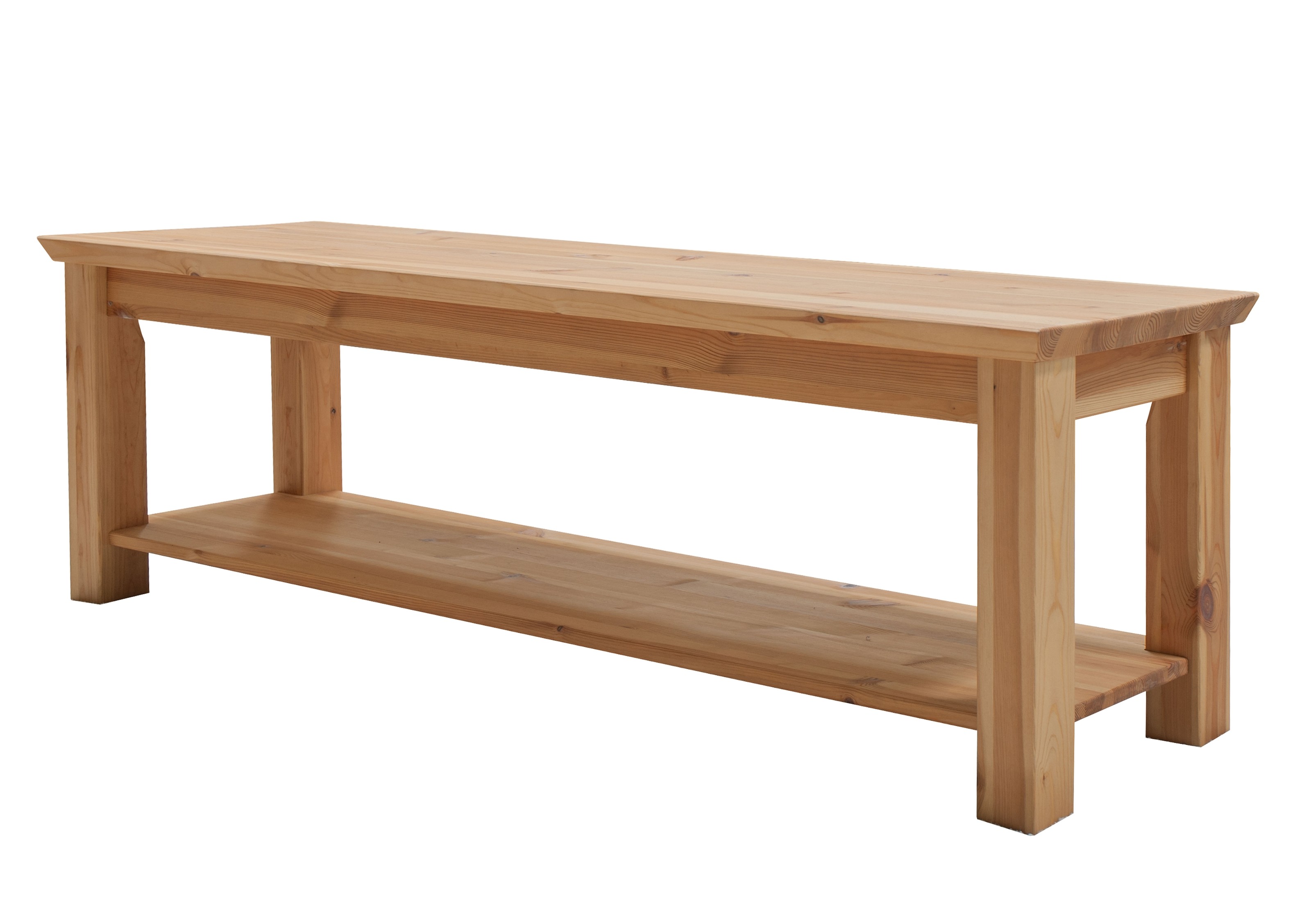 Gefertigt aus geöltem und gebeiztem Kiefernholz in der Farbe Eiche überzeugt die Bank durch ihre warme, braune Grundfarbe und natürliche Holzoptik. Eine integrierte Ablage sorgt zusätzlich für Stauraum und macht das Möbelstück noch vielseitiger im Alltag.
