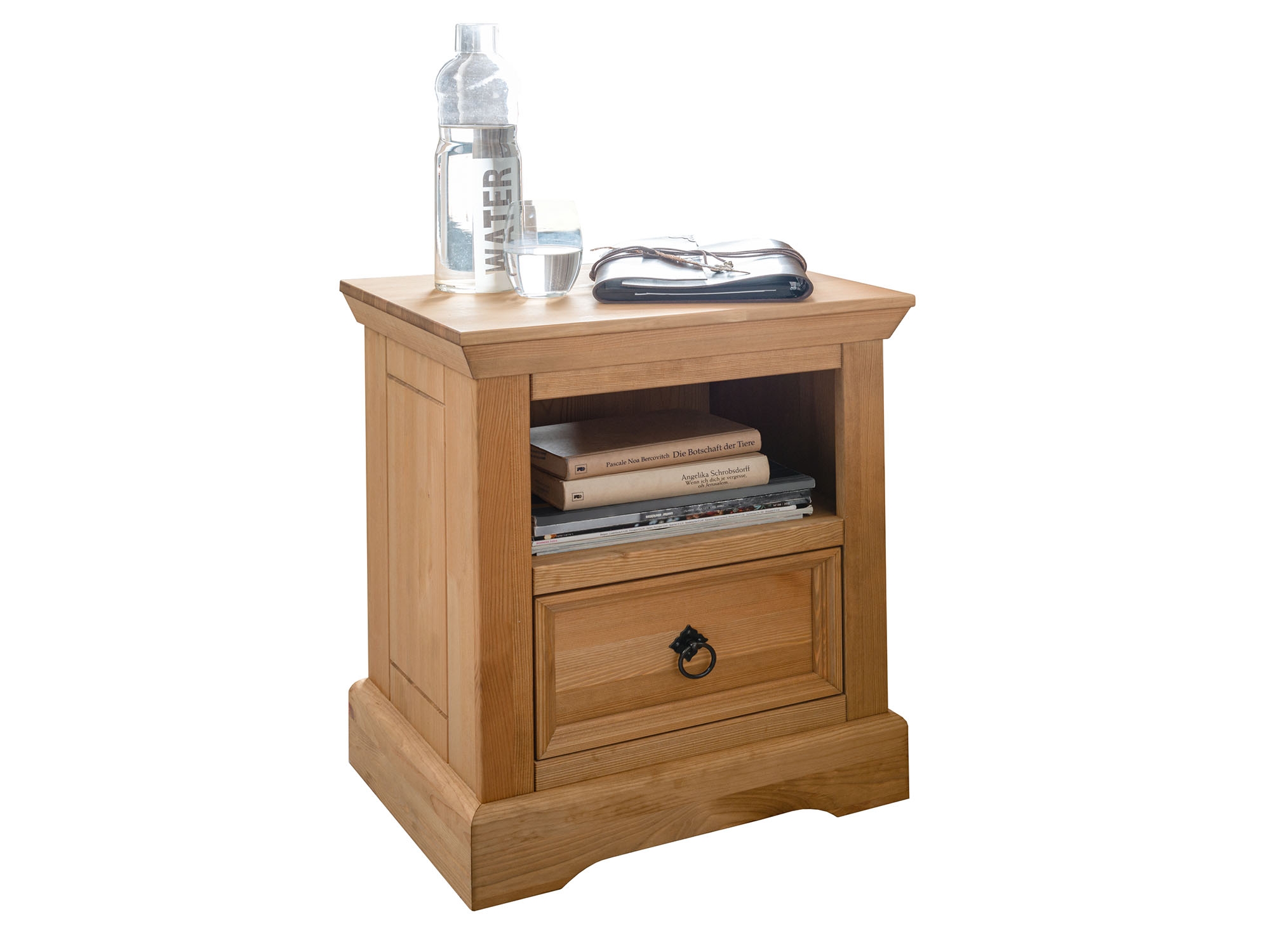 Aus Kiefernholz geölt und gebeizt in Eiche, mit 1 Ablage |