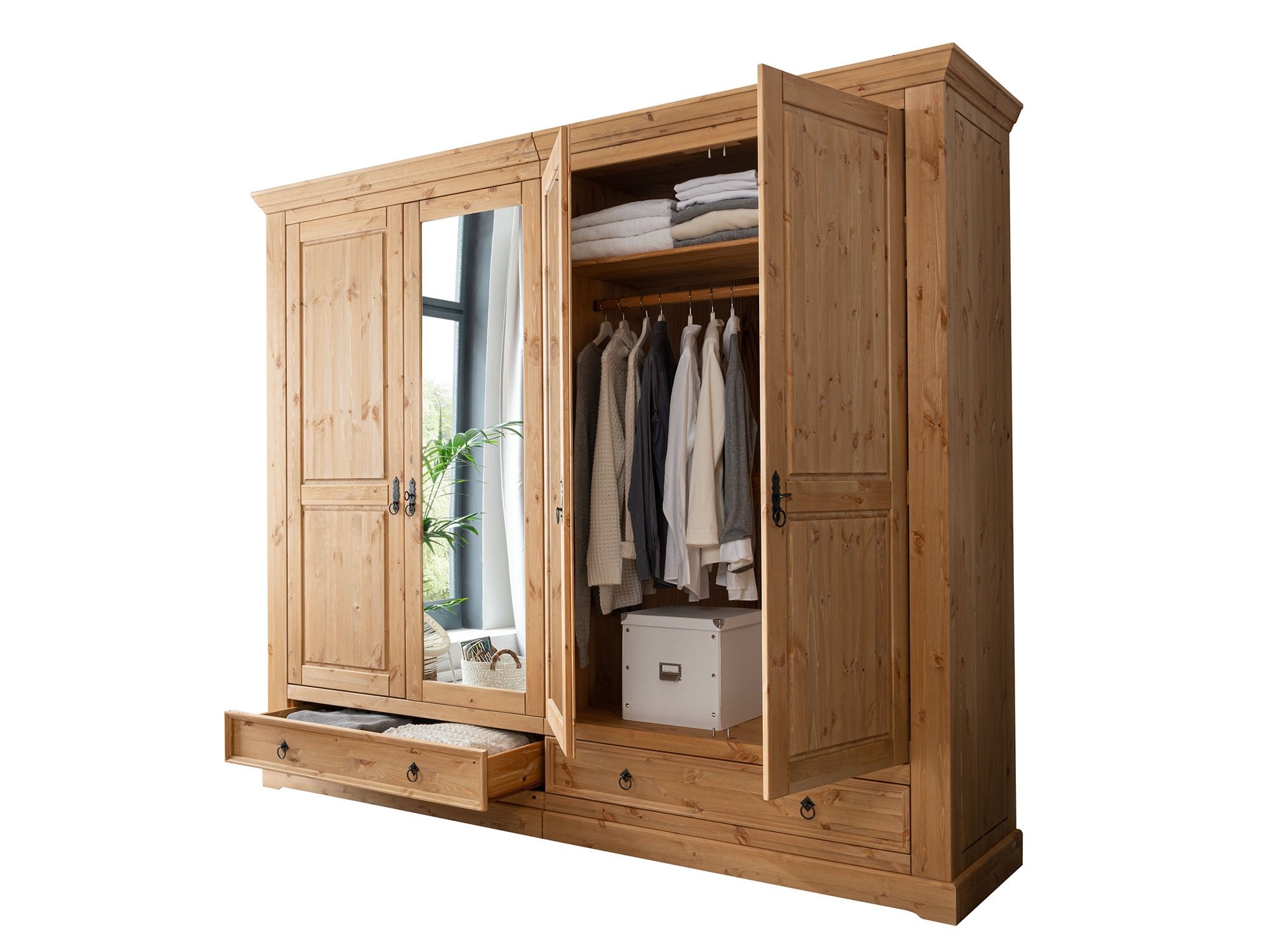 [cWert] => 1 Schubladen, 2 Türen;Gefertigt aus Kieferholz geölt und gebeizt in Farbe eiche;Breite 106 cm x Höhe 150 cm x Tiefe 42 cm