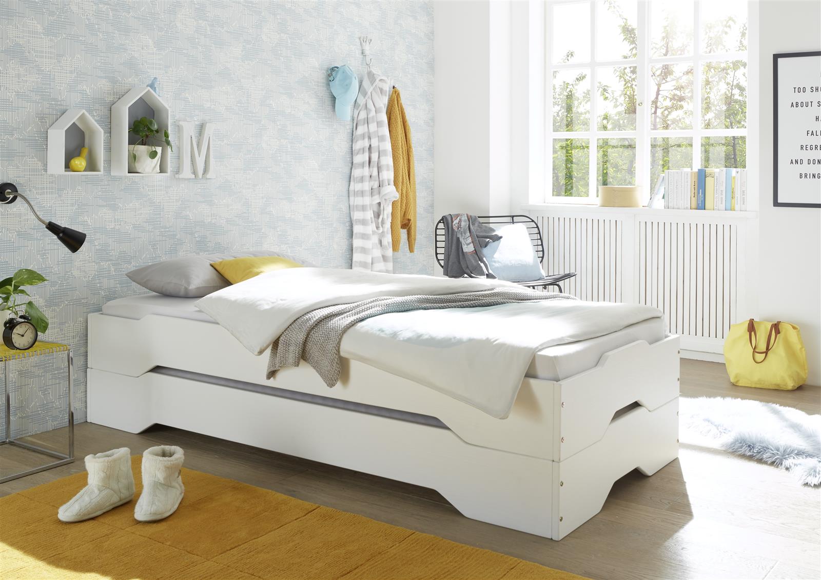 Nutzen Sie das Bett wahlweise als platzsparendes Stapelbett oder als zwei separate Einzelbetten.