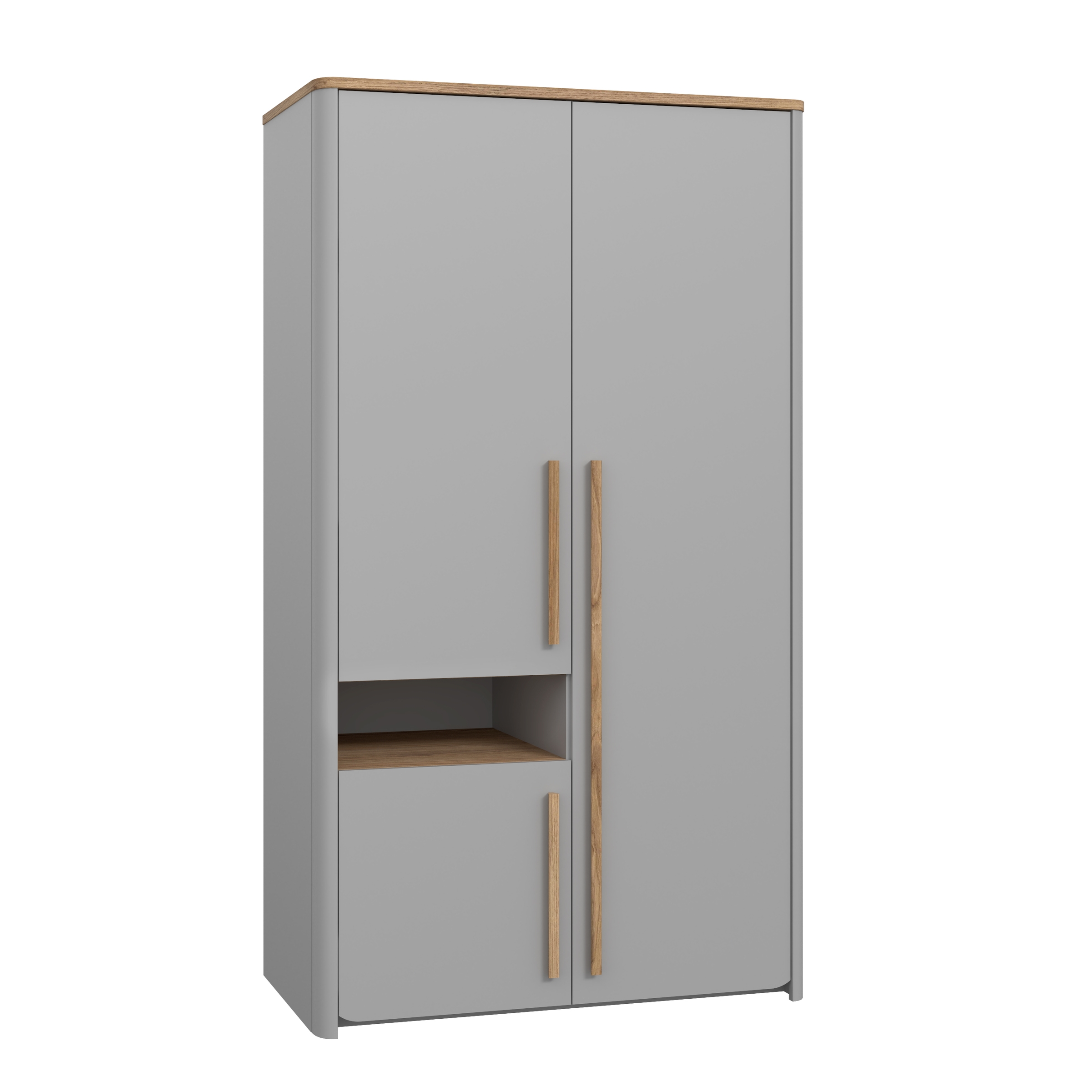 Das moderne Grau des Korpus in Kombination mit der Griffleiste in Catania Eiche und schwarzen Kunststofffüßen fügt sich harmonisch in zeitgemäß eingerichtete Schlafzimmer ein. Hochwertige Spanplatten für Seitenteile und Unterteil sorgen dabei für Stabilität, Langlebigkeit und eine pflegeleichte Oberfläche.