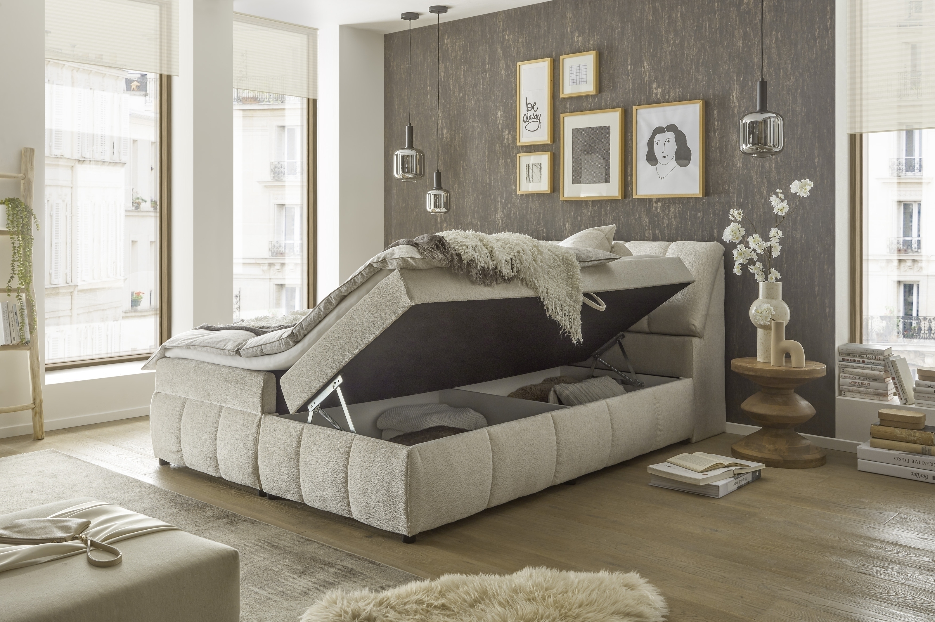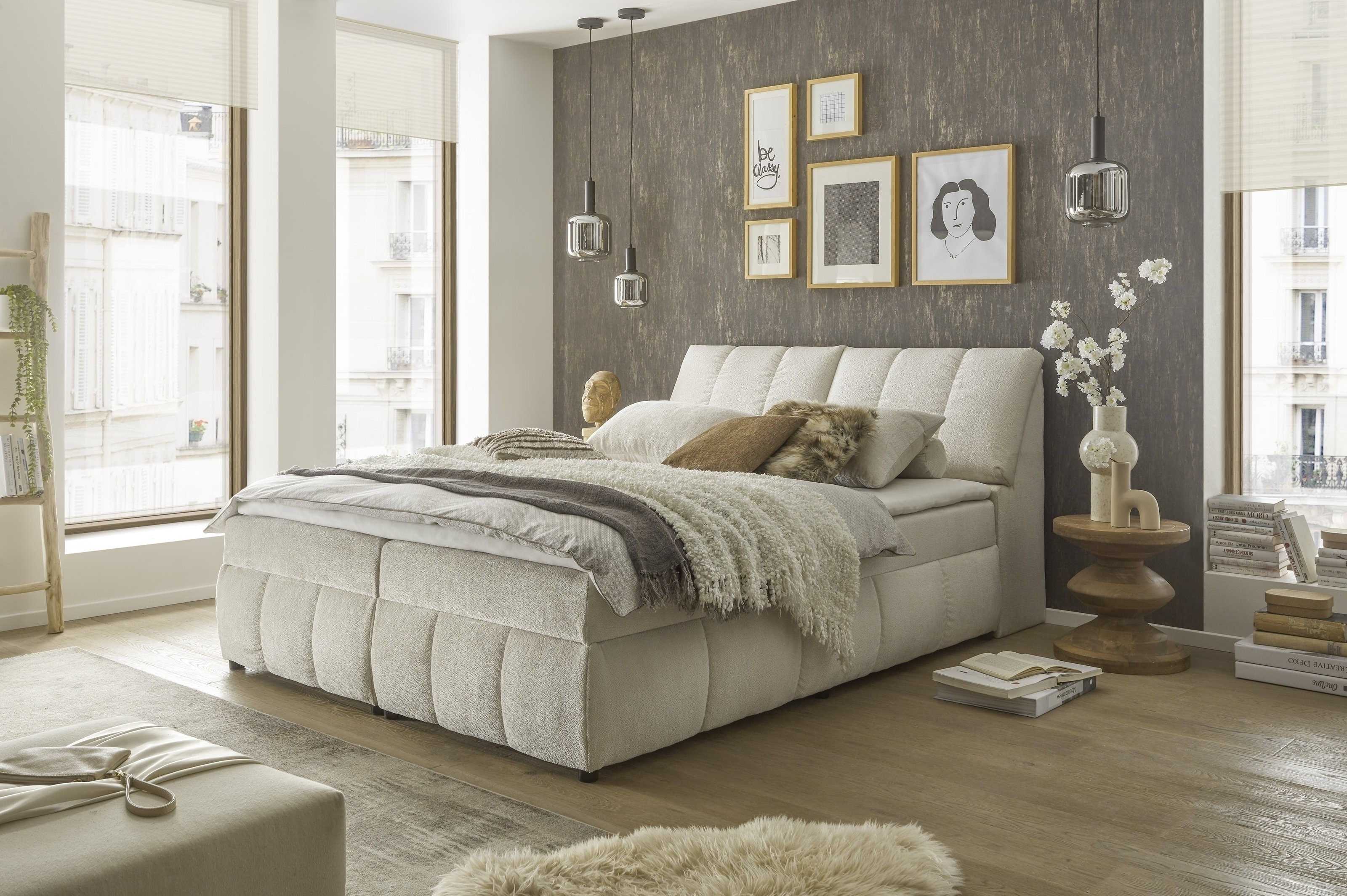 [cName] => Boxspringbett >Valencia 180< 4x Bettkasten / Stauraum, inkl. Topper, Bezug Ivory cream, Liegefläche 180x200cm - Stellmaß 183x105x240cm (BxHxT)