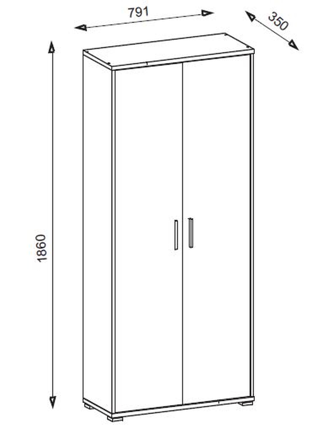 Breite 79 cm, Höhe 186 cm, Tiefe 35 cm |