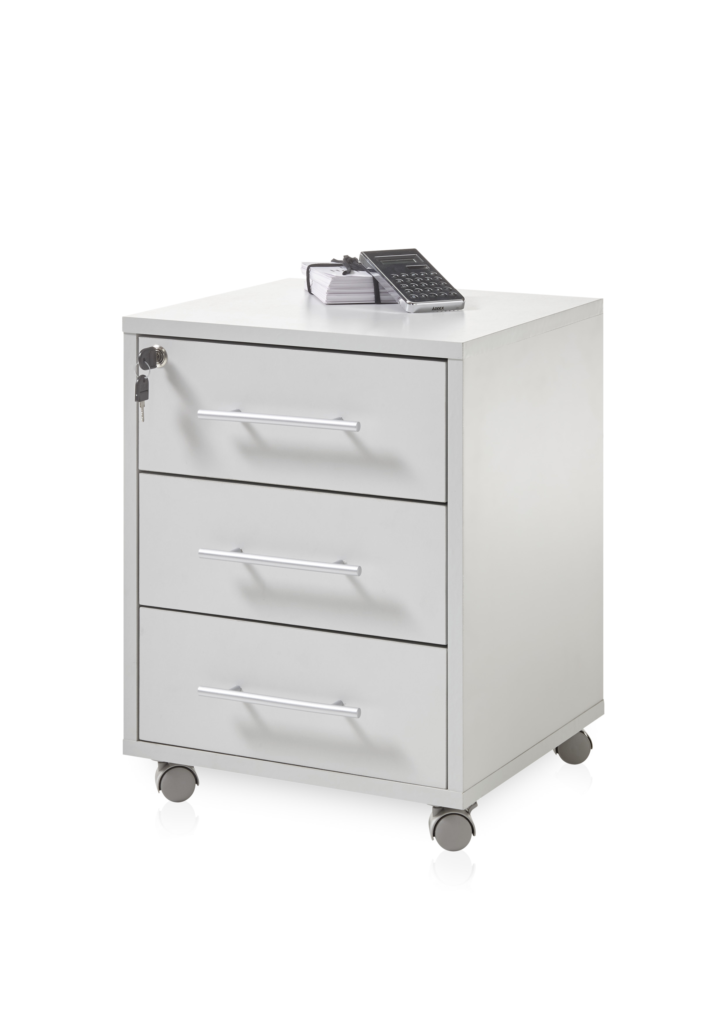 [metaDescription] => Praktischer Rollcontainer aus Spanplatte in Lichtgrau mit 3 Schubkästen Breite 43 cm, Höhe 56 cm, Tiefe 42 cm