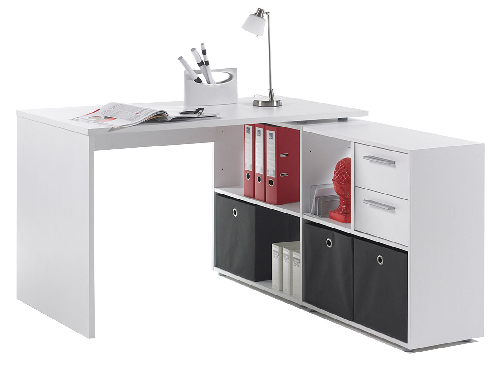 ✔Eckschreibtisch mit zwei Schubkästen und vier offenen Fächern für schnell griffbereite Arbeitsutensilien