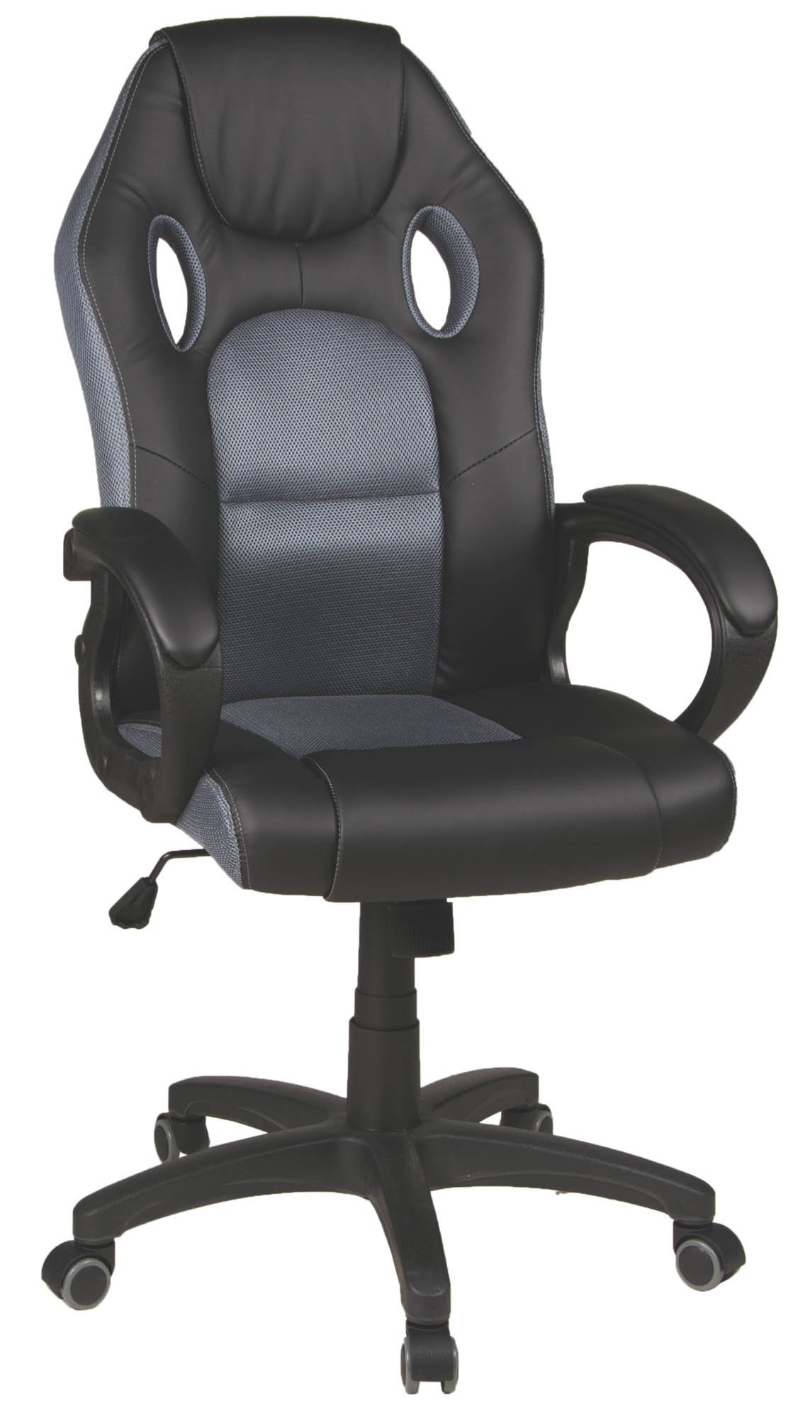 Optisch überzeugt Riley im sportlich-modernen Racer-Design in Schwarz/Grau mit farblich abgesetzten Ziernähten. Der Mix aus pflegeleichtem Kunstleder und atmungsaktivem Netzstoff in der S-förmigen Rückenlehne mit Lendenwirbelstütze sorgt für ein angenehmes Sitzklima und unterstützt den Rücken ergonomisch.