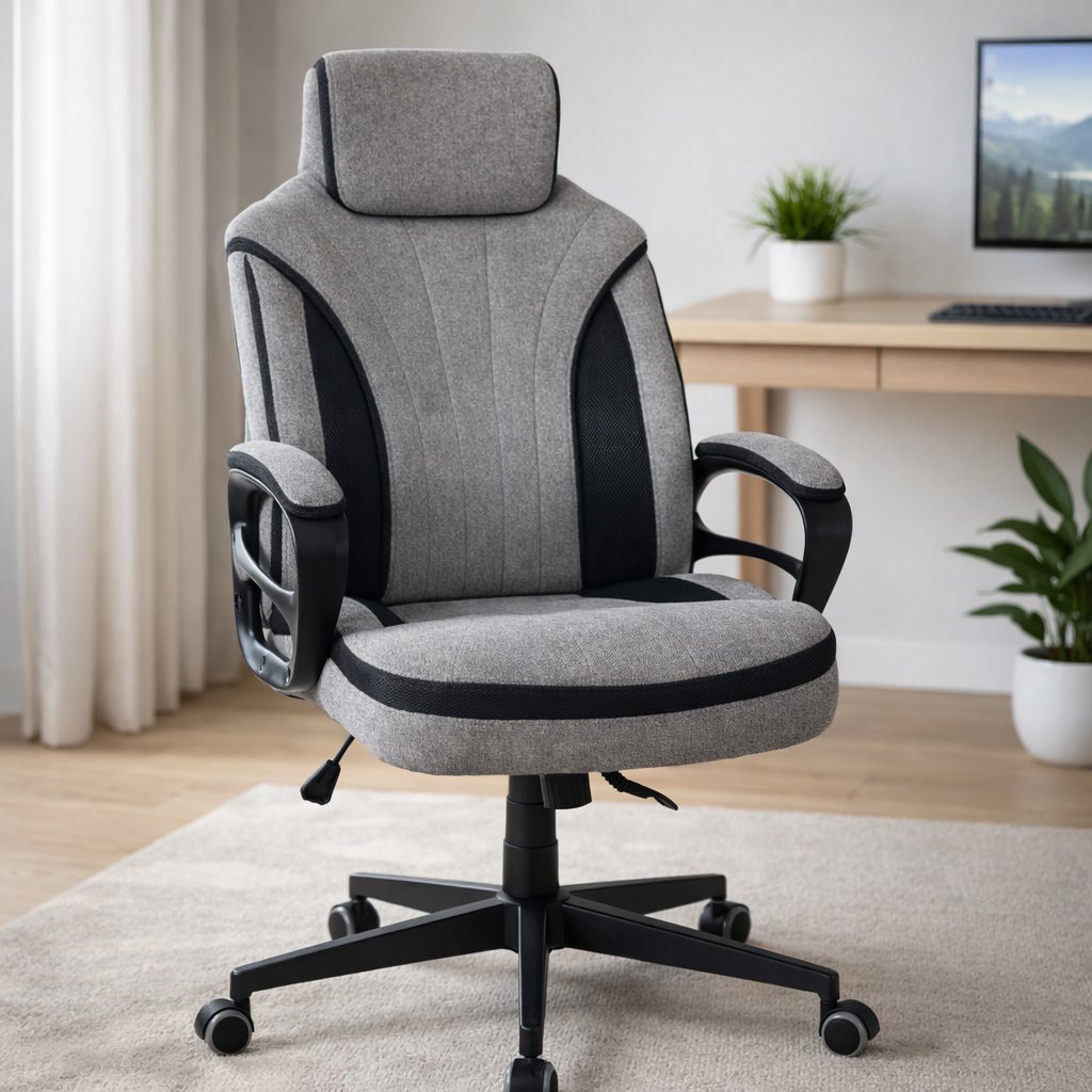Der Bezug aus robustem Webstoff (100 % Polyester) und der atmungsaktive Netzstoff-Rücken bieten nicht nur eine angenehme Sitzatmosphäre, sondern auch eine moderne Optik. Die Farbkombination grau/schwarz verleiht dem Stuhl ein professionelles und stilvolles Erscheinungsbild, das in jedem Home-Office oder Arbeitszimmer eine gute Figur macht.