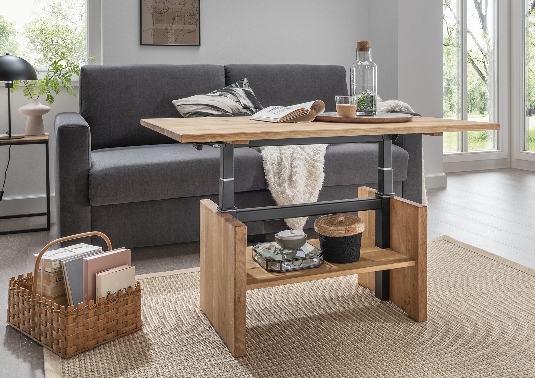 Couchtisch 2136 – Couchtisch aus Eiche Massiv mit höhenverstellbarer Tischplatte