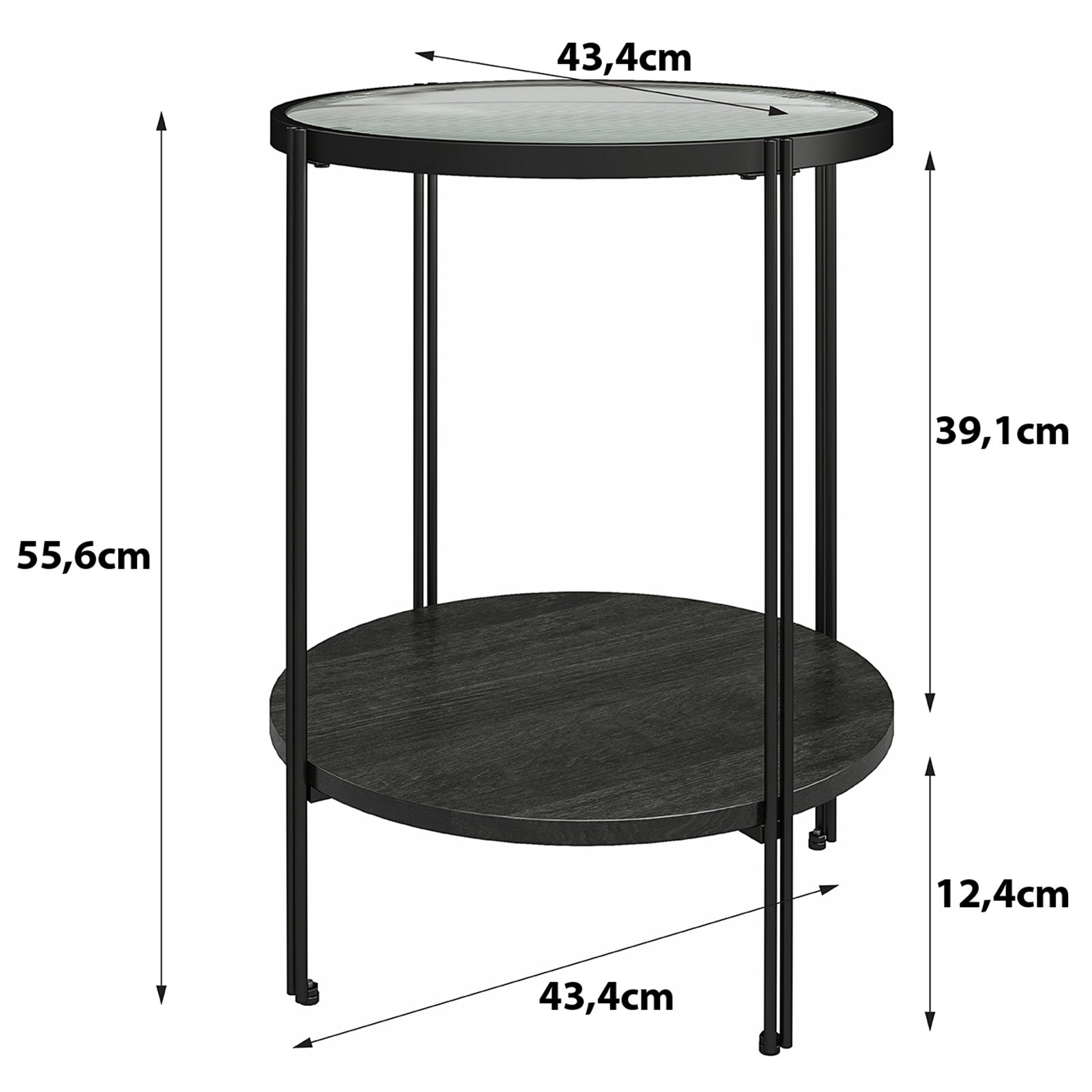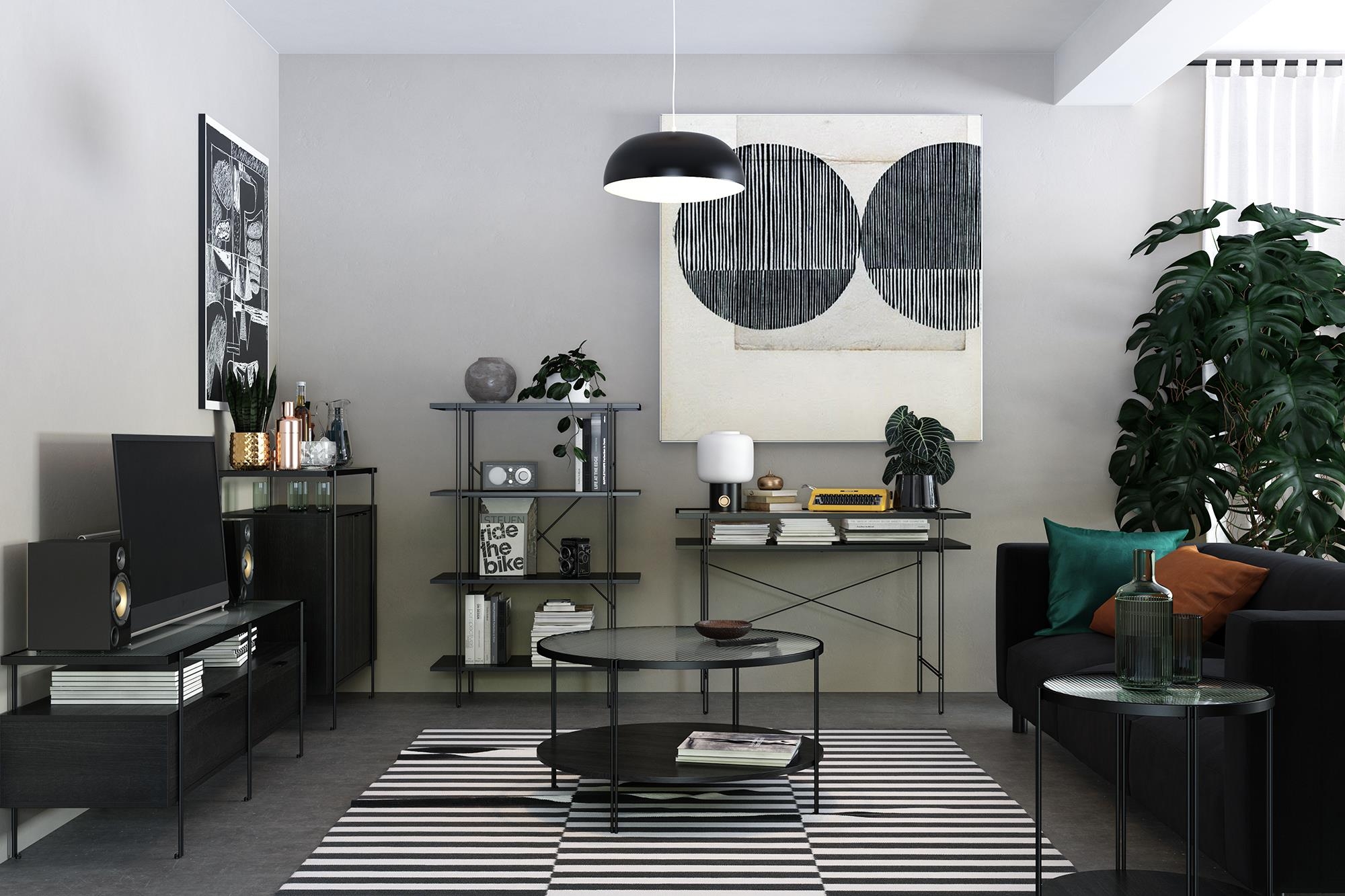 ;Hergestellt aus Glas, Metall und Spanplatte in elegantem Schwarz, passt es perfekt in moderne Wohnräume.