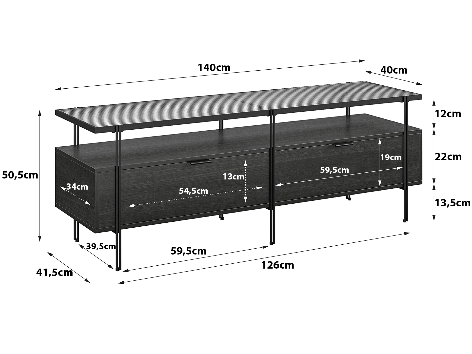 [1] => Lowboard-AElva-Glas-Metall-matt-Schwarz-140x50x39cm-BxHxT