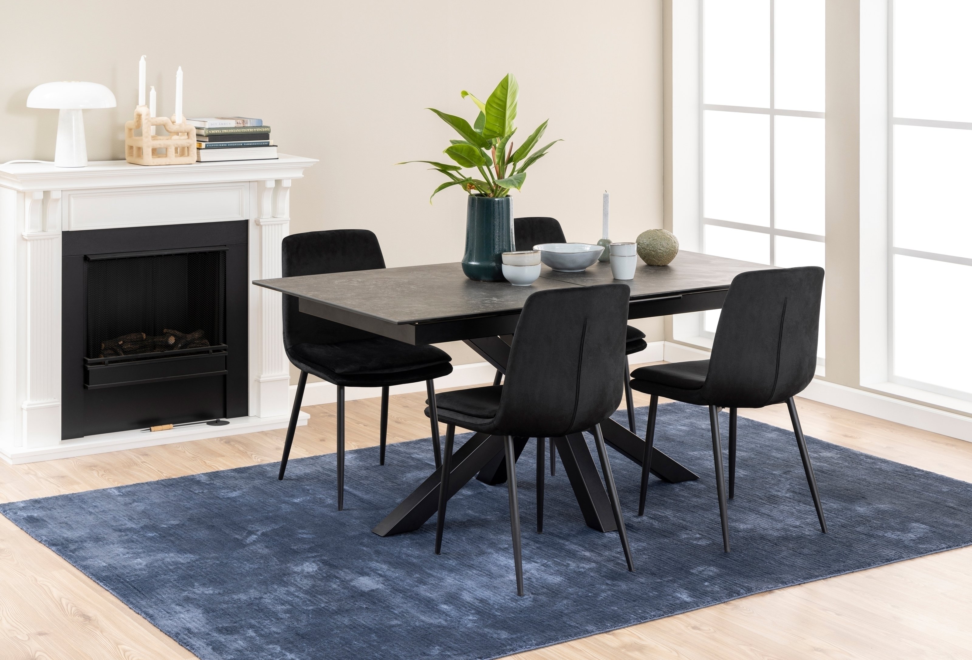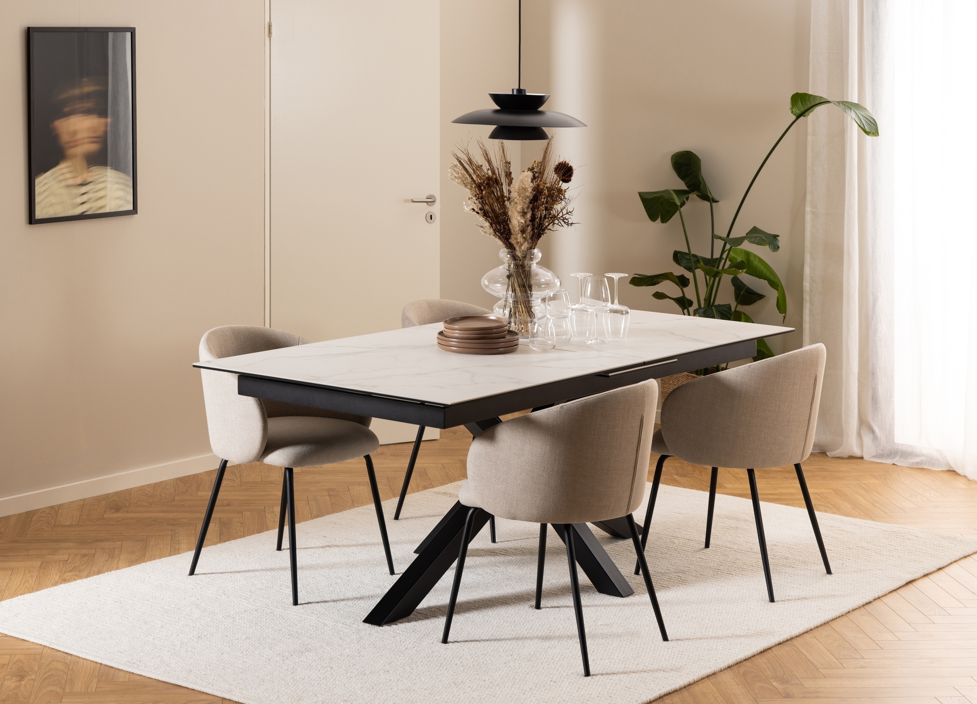 Die Tischplatte aus hitzebeständigem Glas mit keramischer Beschichtung in Fairbanks Schwarz vereint Robustheit mit pflegeleichter Eleganz. Sie ist nicht nur stabil, sondern auch resistent gegen Hitze und Kratzer, sodass Sie sich keine Sorgen um Alltagsspuren machen müssen.