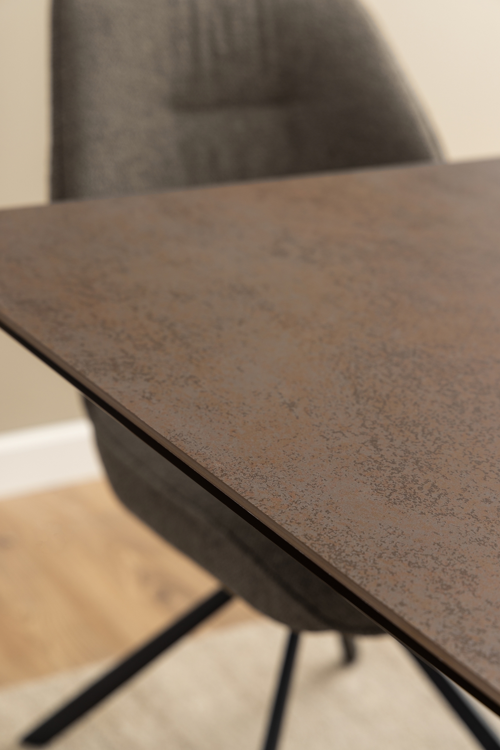 [Bullet-Point 2] => Die Tischplatte besteht aus hochwertiger Glas-Keramik in rostbrown Lemco, die nicht nur elegant aussieht, sondern auch widerstandsfähig gegen Kratzer und Hitze ist.