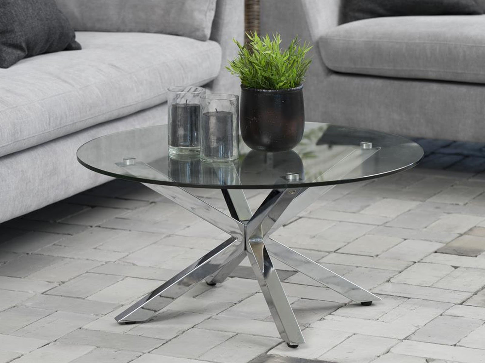 Hella Couchtisch – Moderner Glastisch mit Chromgestell für stilvolles Wohnen