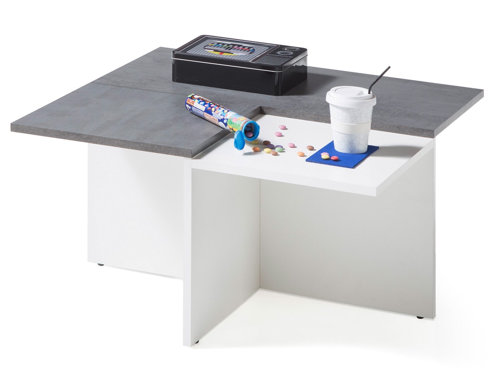 Ob als zentrale Ablagefläche vor dem Sofa oder als stilvolle Ergänzung Ihrer Wohnwand – dieser Couchtisch integriert sich dank seines modernen, weiß-betonfarbenen Dekors harmonisch in viele Einrichtungsstile. Er bietet Platz für Zeitschriften, Bücher, Deko-Elemente oder den Nachmittagskaffee, den Sie bei Ihrer Lieblingssendung genießen möchten.