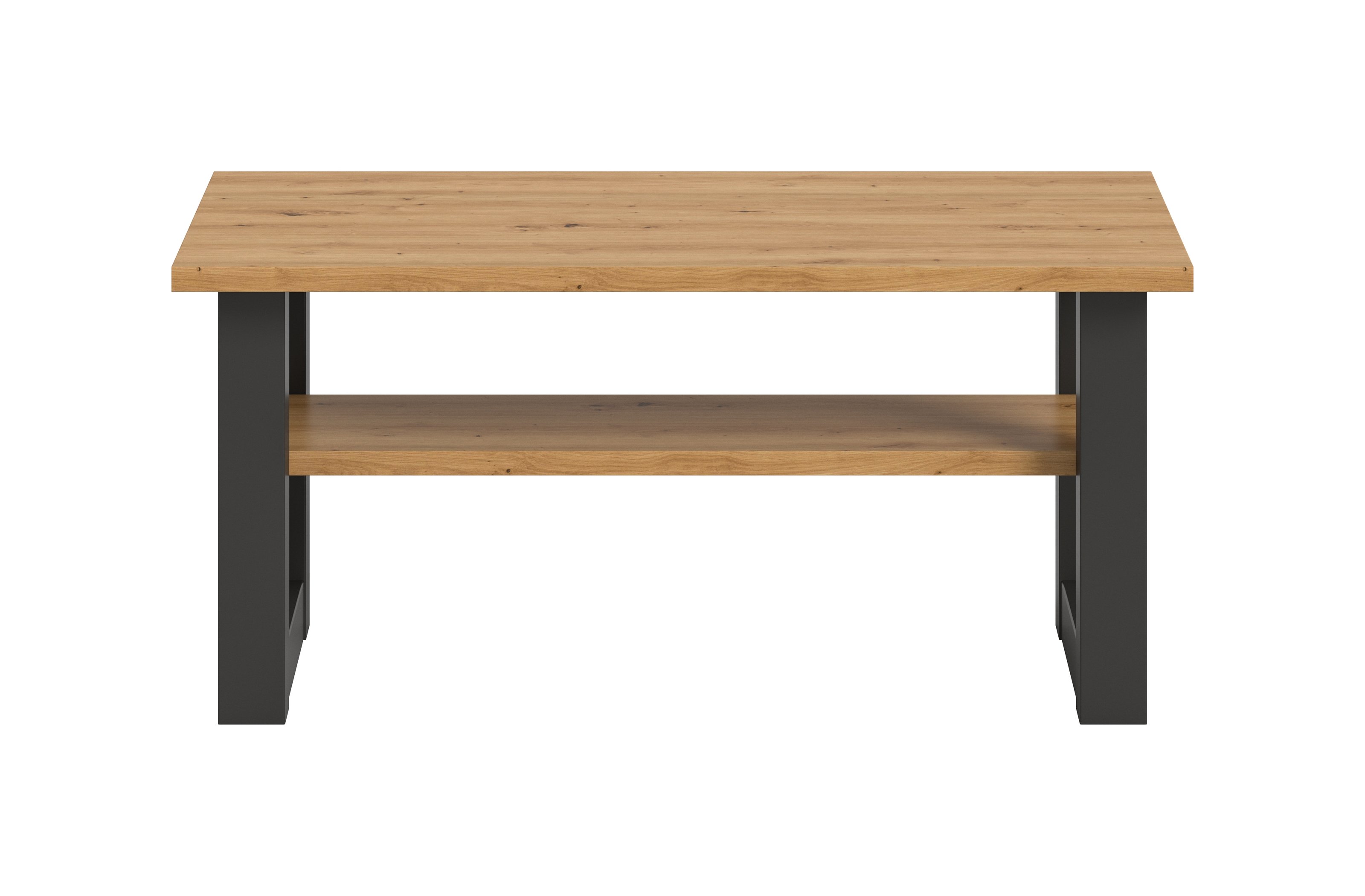 Die moderne Kombination aus grauer Nachbildung und Artisan Eiche Nachbildung verleiht dem Tisch einen zeitlosen Look, der sich harmonisch in viele Einrichtungsstile einfügt. Der praktische Ablageboden unter der Tischplatte schafft zusätzlichen Stauraum, sodass Fernbedienungen, Magazine oder Tablets ordentlich verstaut und dennoch griffbereit bleiben.