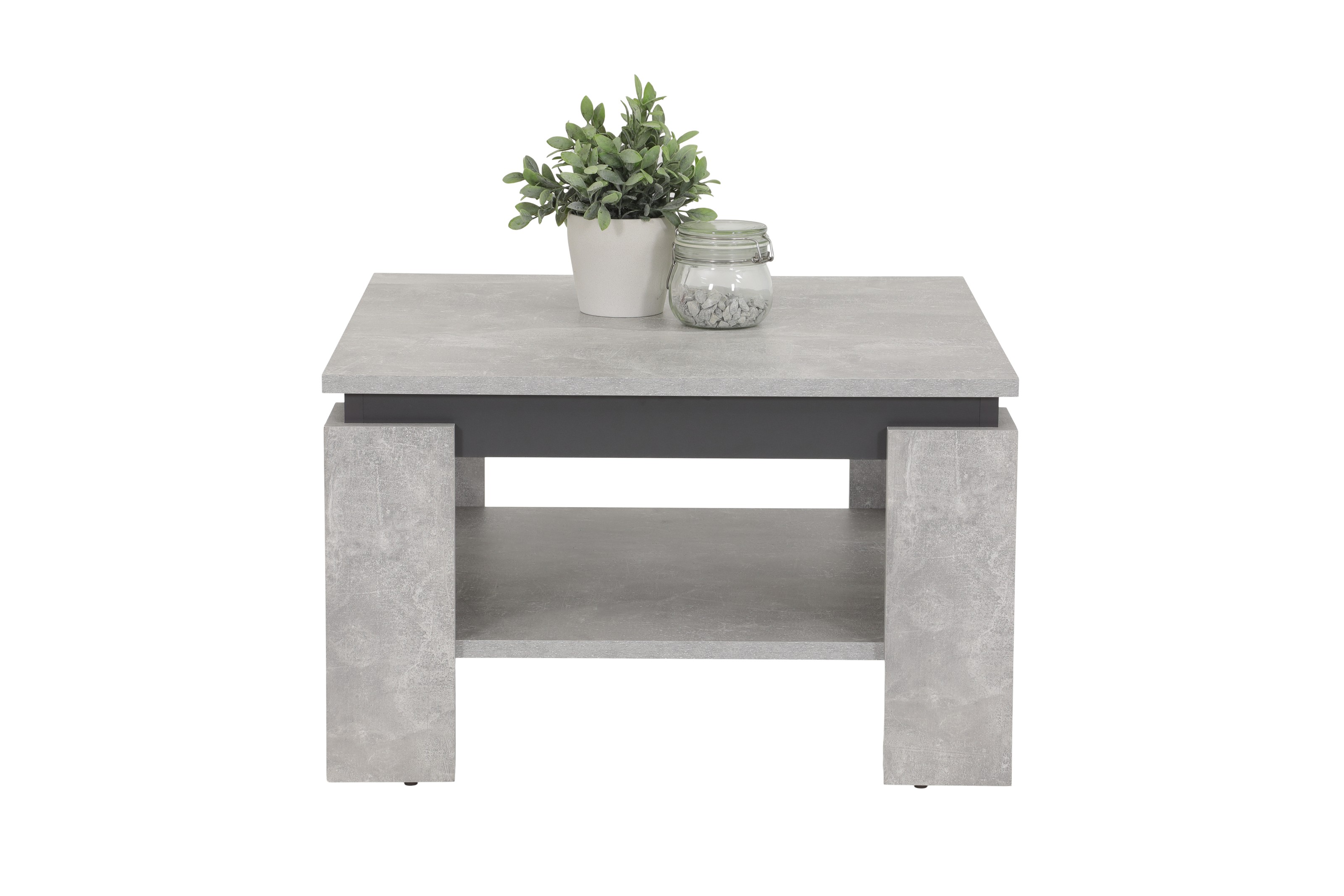 TIM Couchtisch Beton/Anthrazit – quadratischer Wohnzimmertisch mit Stauraum und stabiler Holzwerkstoff-Konstruktion